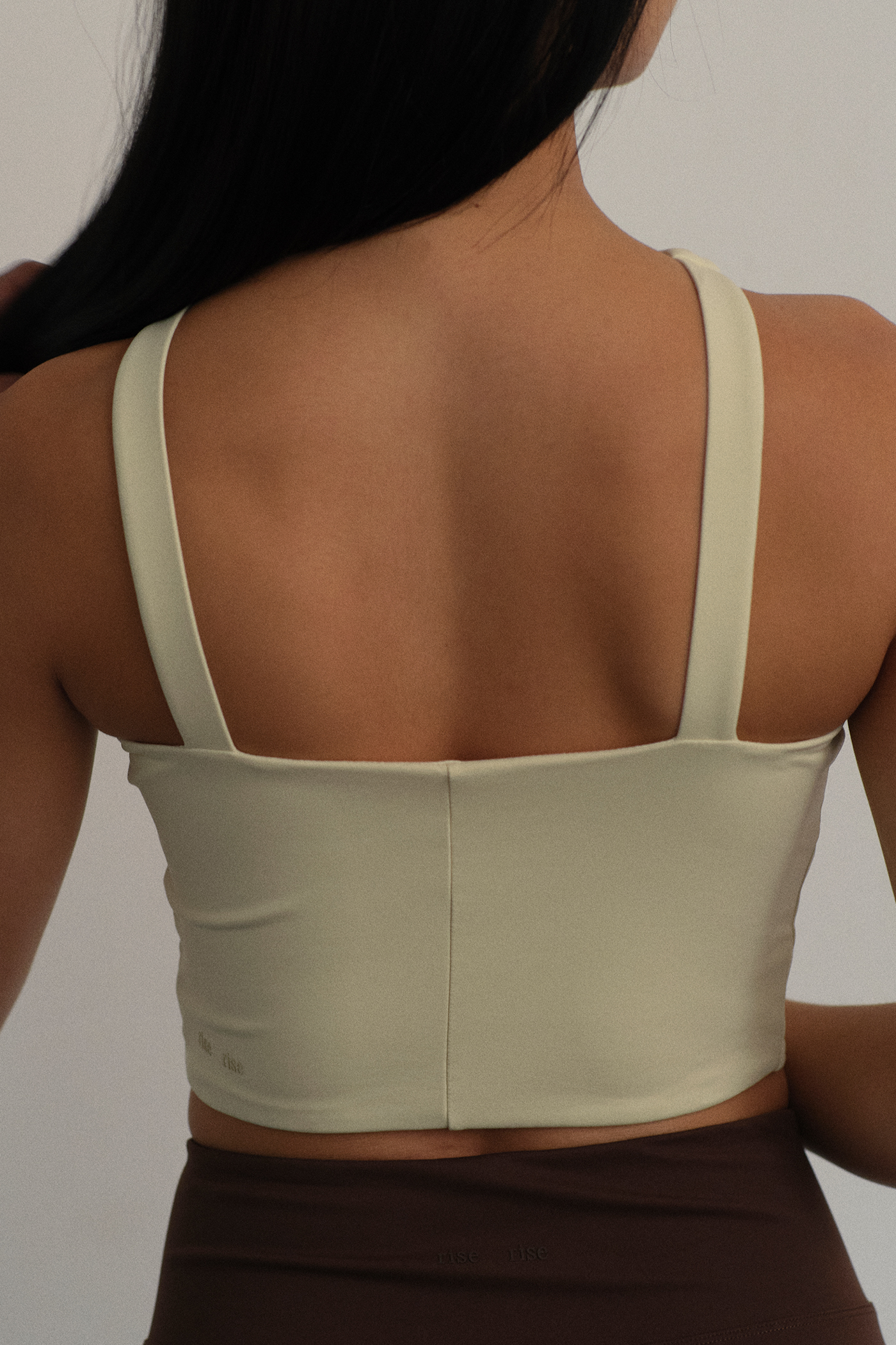 Styled with a crossover front that forms and flatters, this bra is made for you to move freely with its soft, creamy finish. An extended silhouette and a slim concealed chest band offers comfortable coverage, as broader shoulder straps lend extra support for good measure.