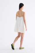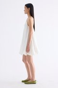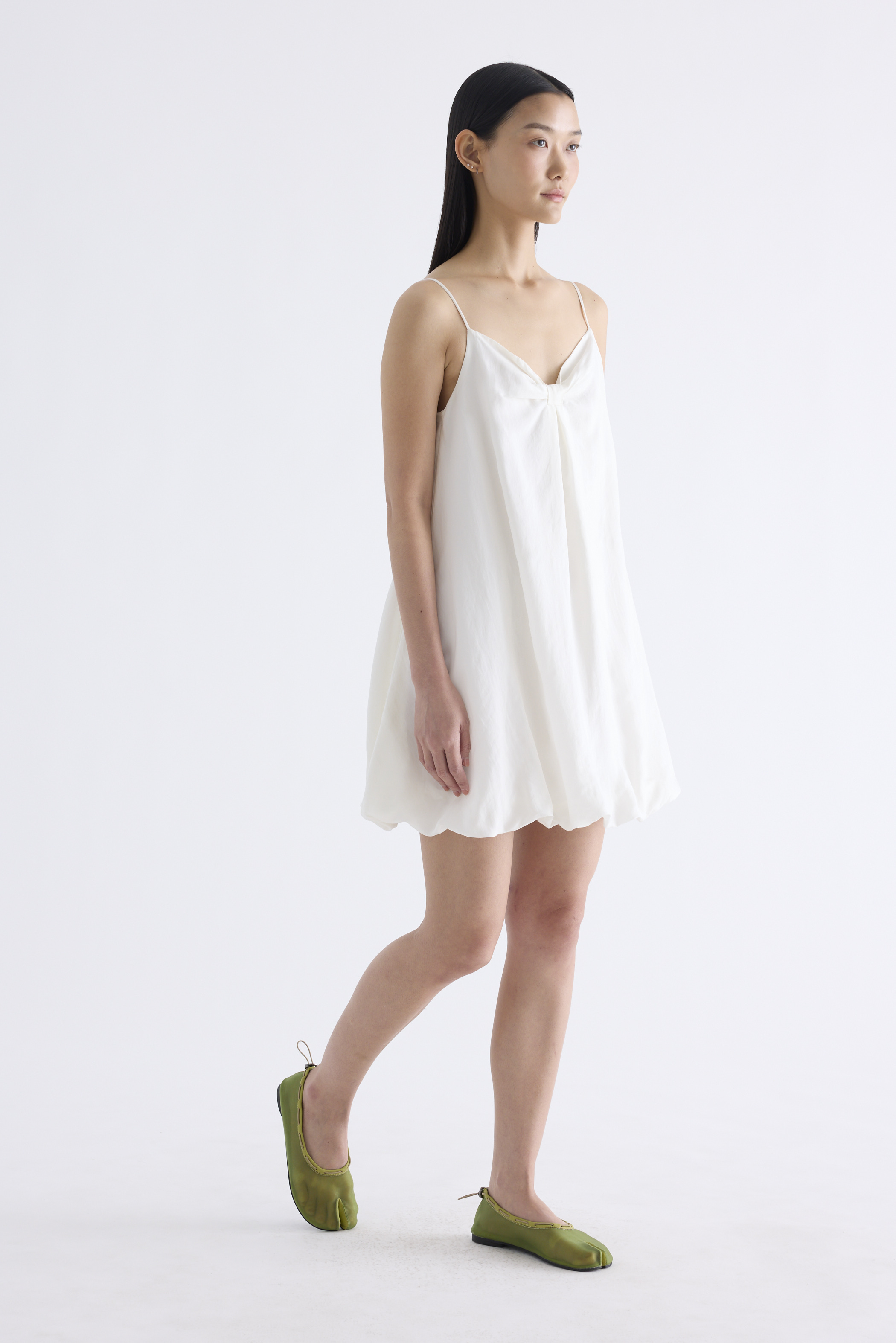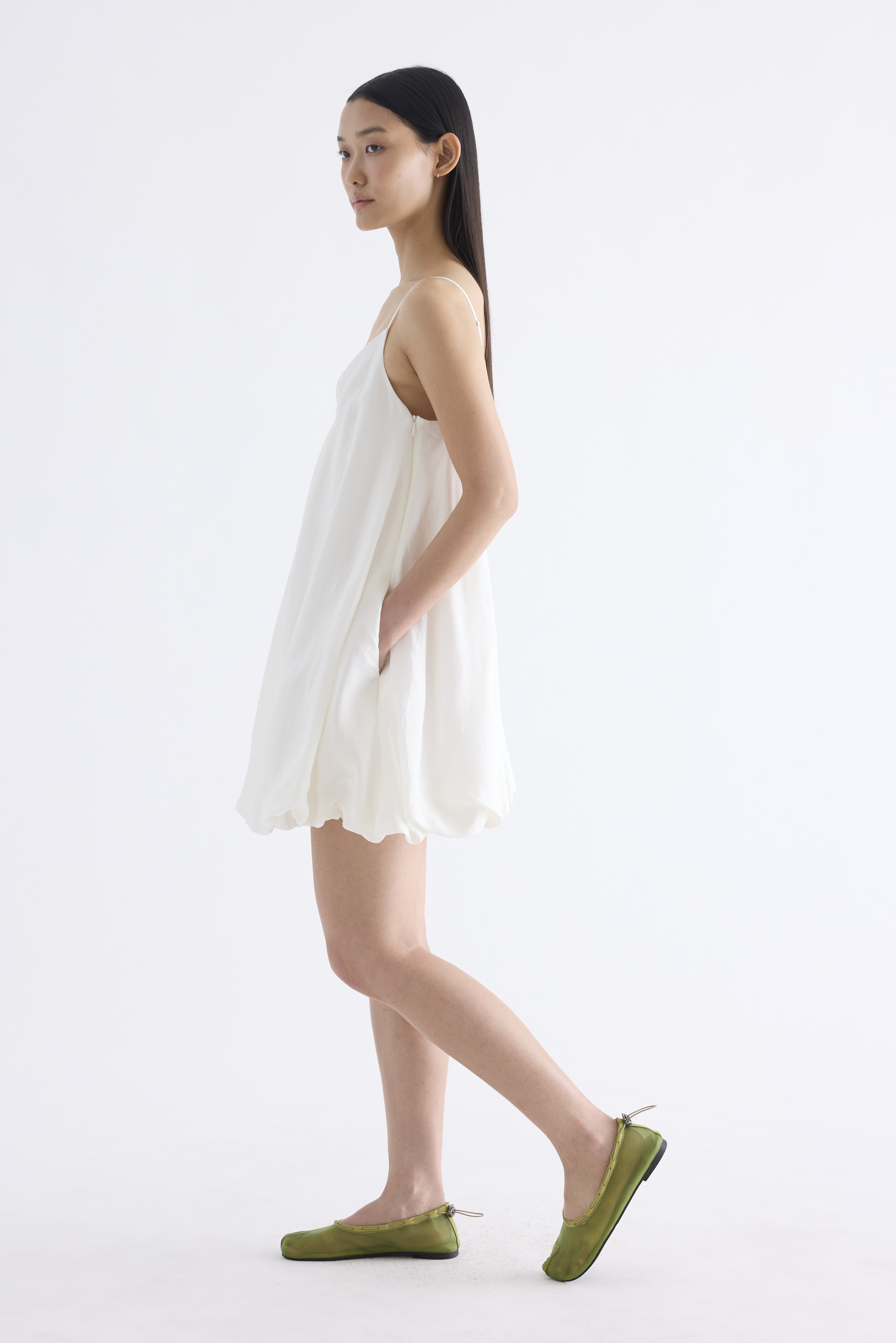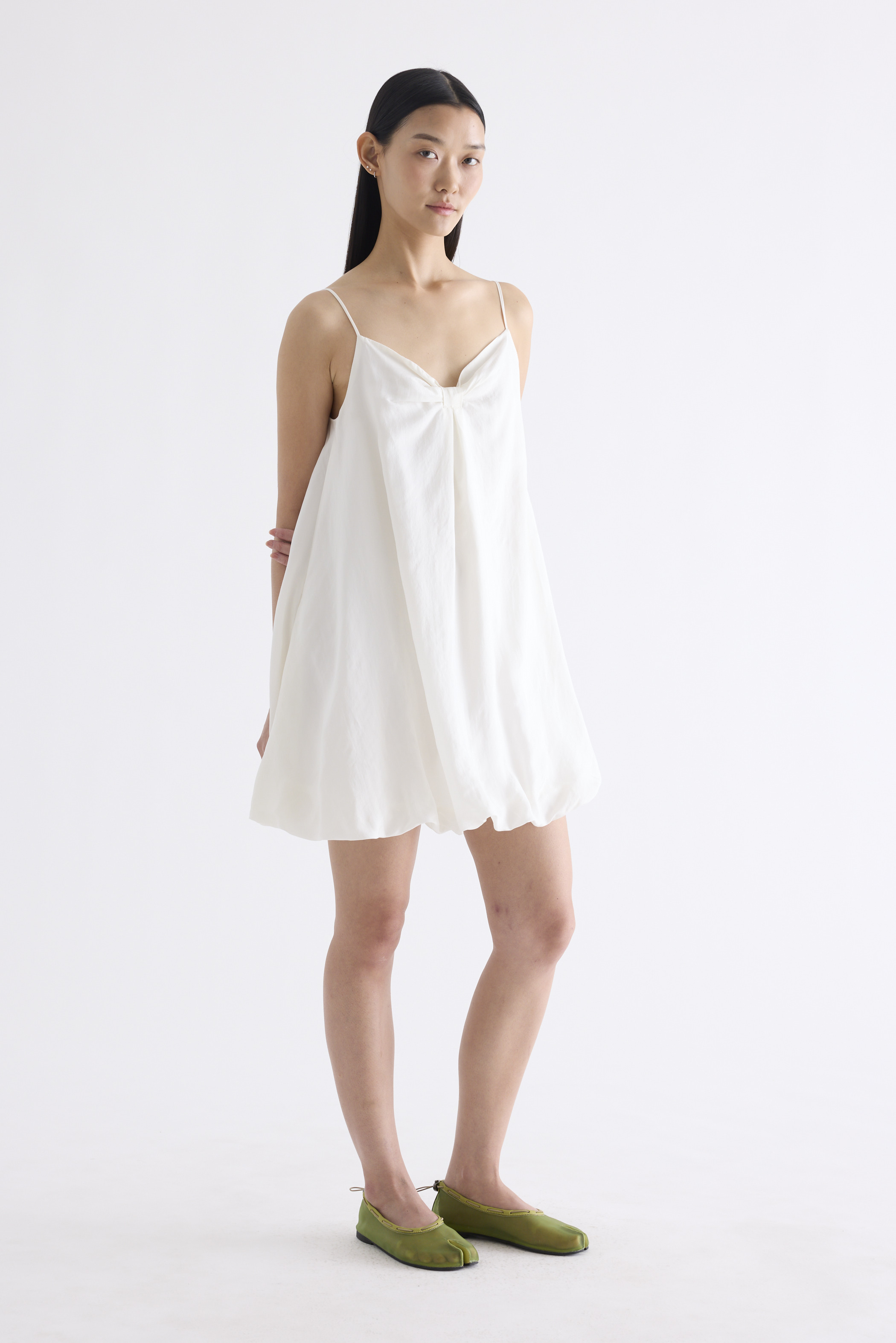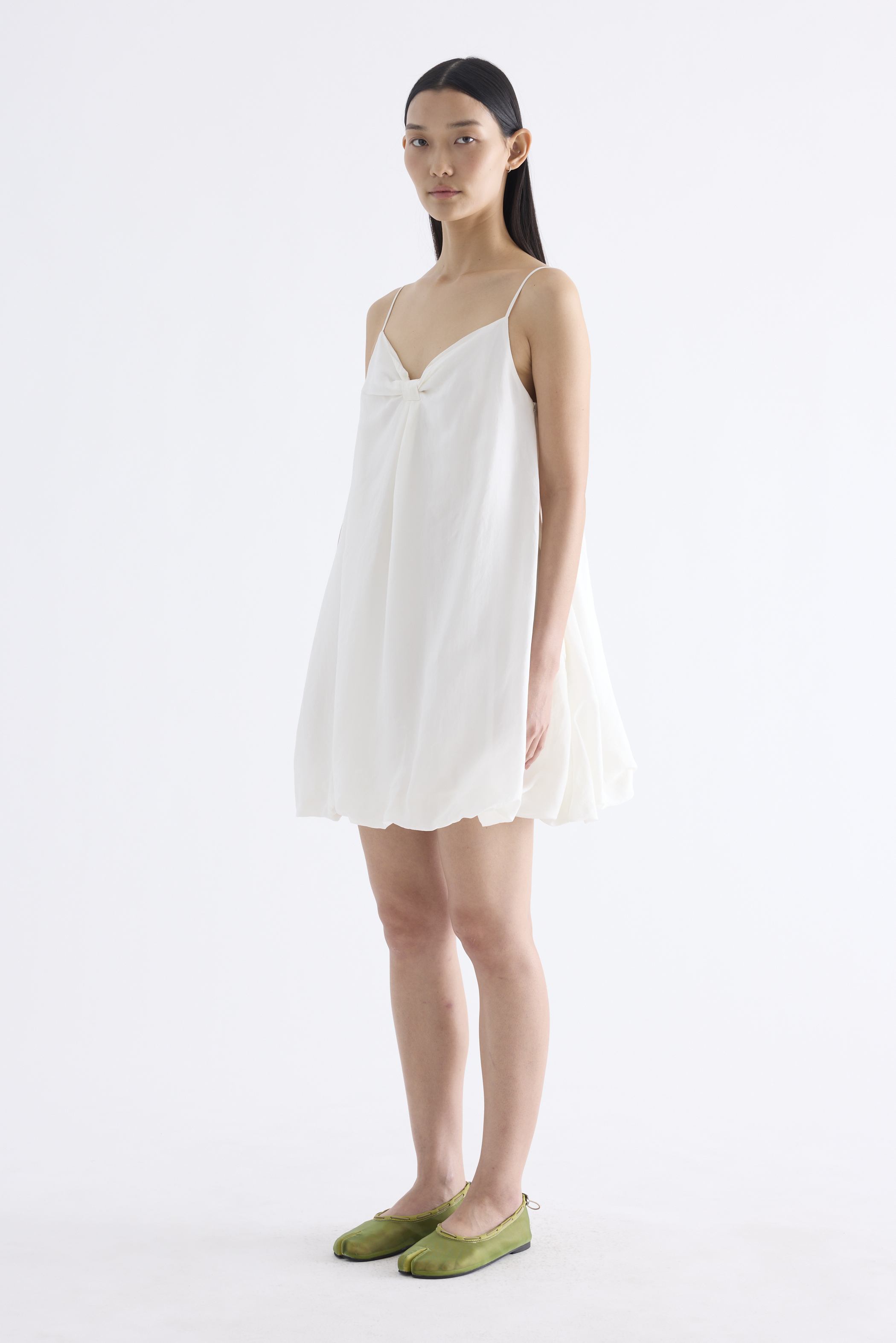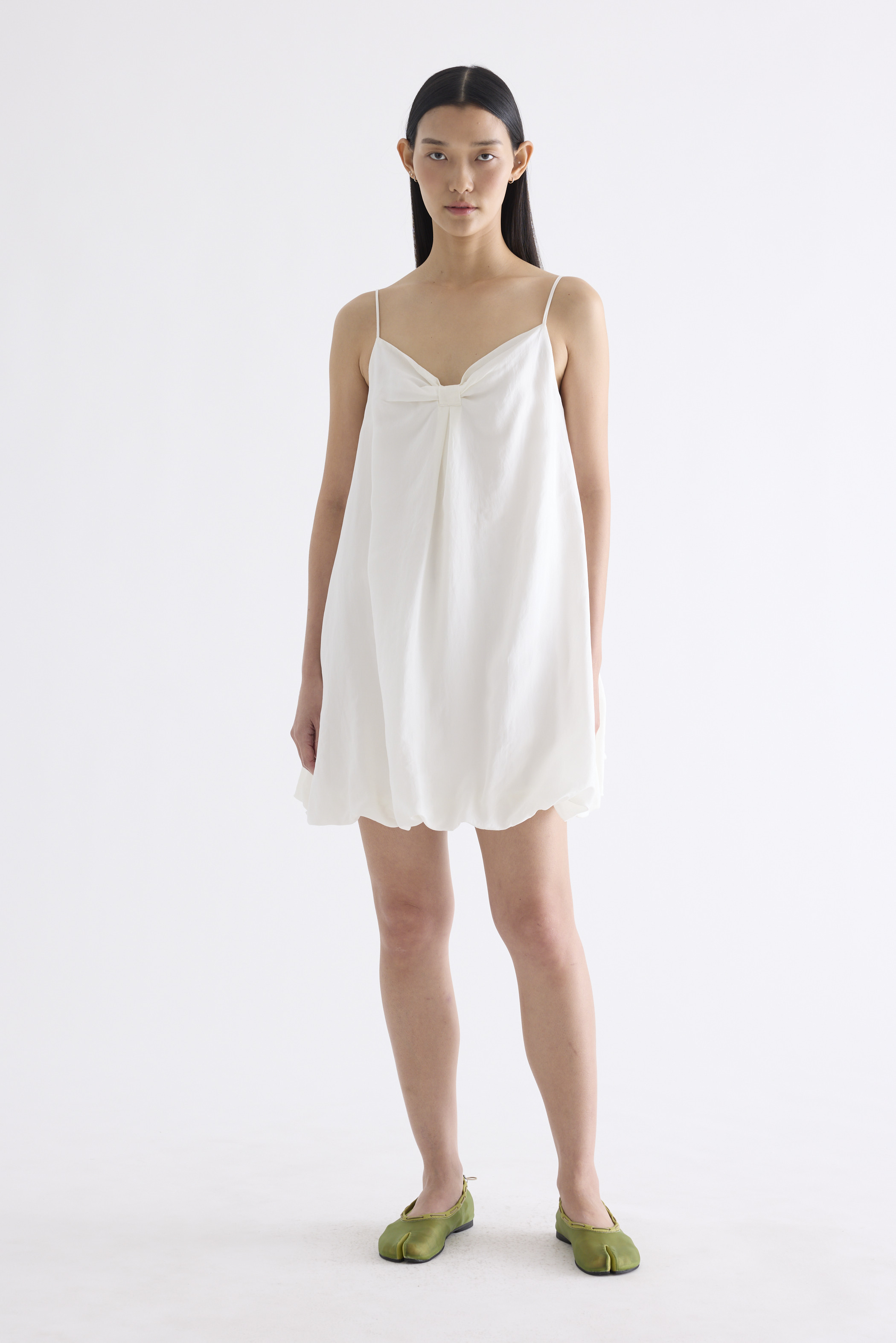 Dress for the occasion. Made from soft and smooth fabric, this sleeveless dress features a bubble hem, bow neckline, side zip and slim adjustable shoulder straps. Fits relaxed and above the knee.
