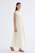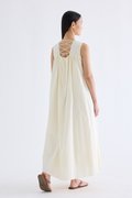 With an element of surprise. Made from crisp and airy cotton, this sleeveless maxi dress features a round neckline, laced-up back tie-straps and side zip closure. Fits relaxed in a gathered tent silhouette.