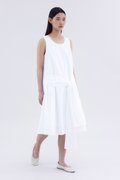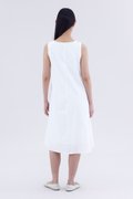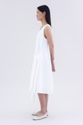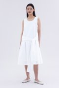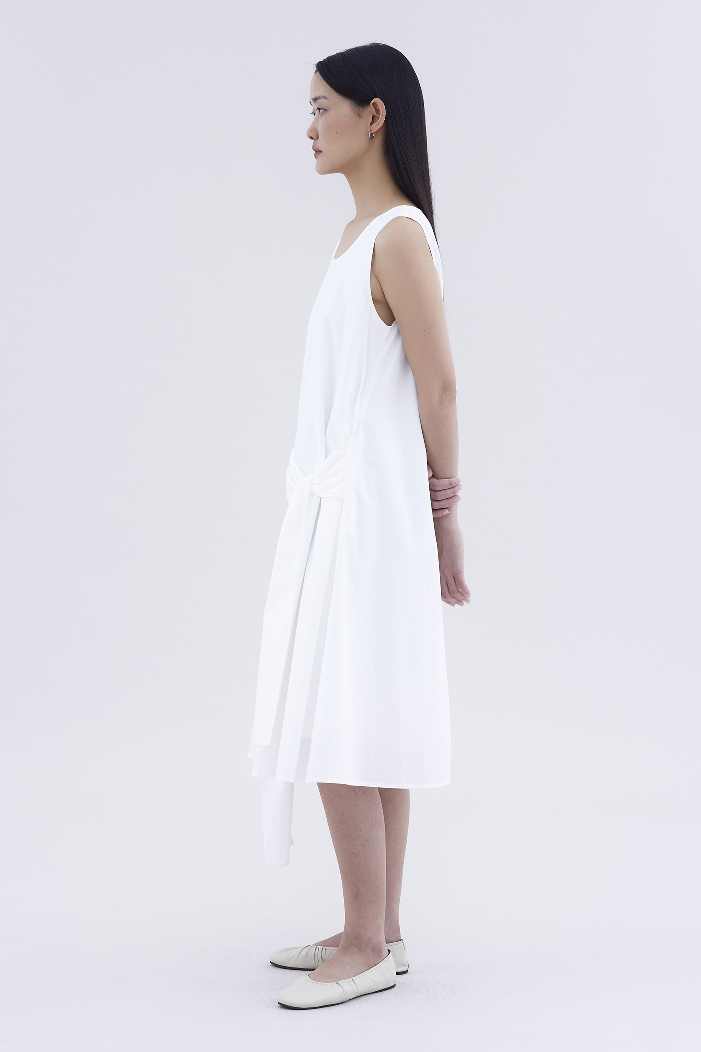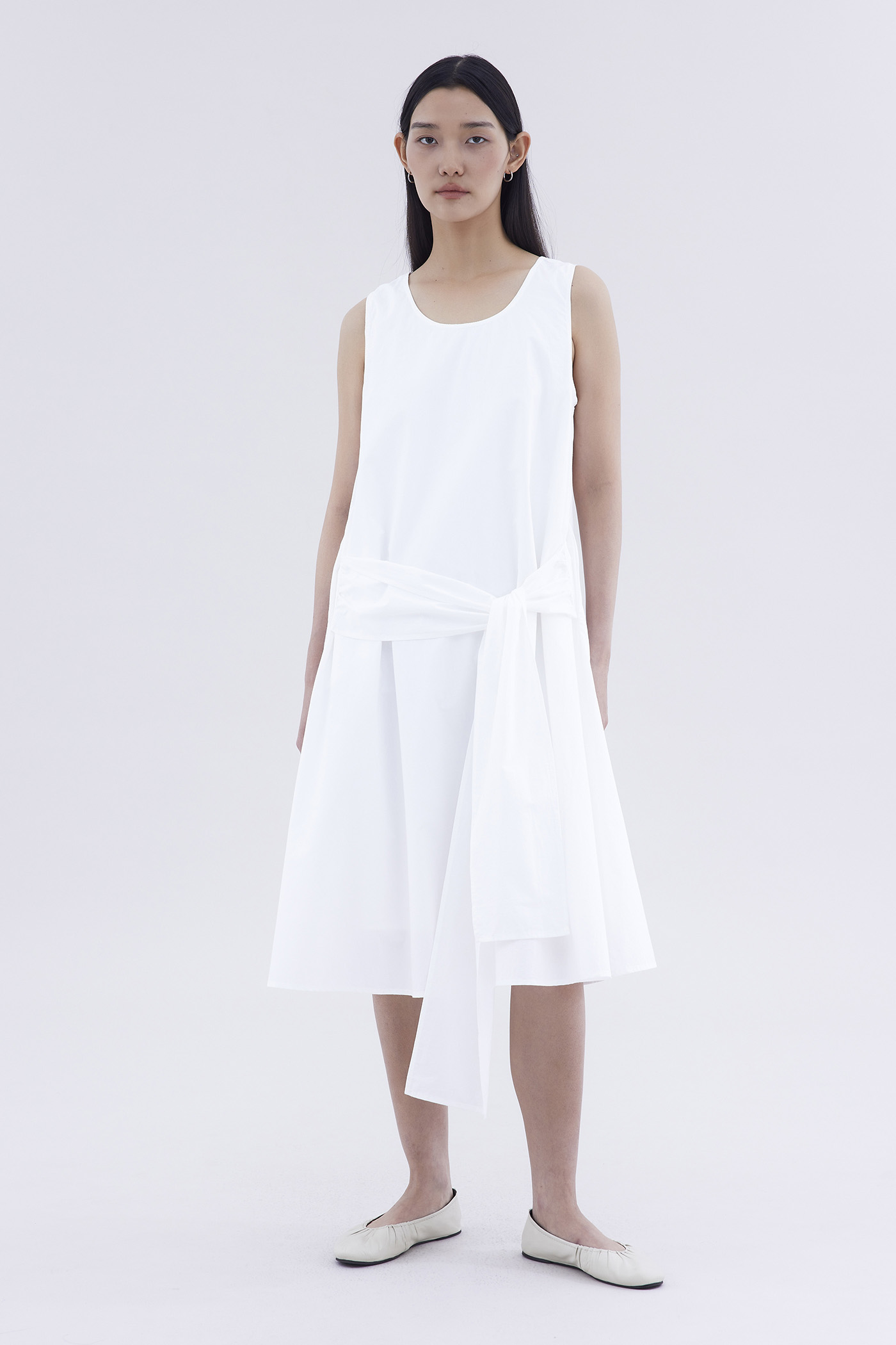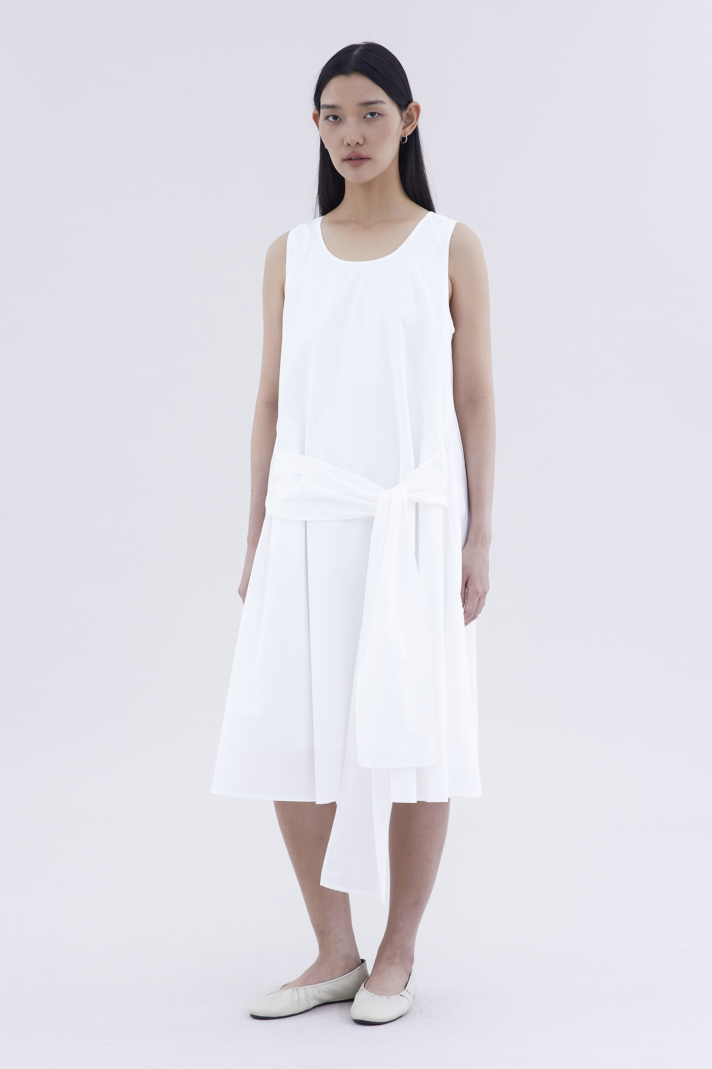 One-piece wonder. Made from crisp and softly structured cotton, this sleeveless maxi dress features a round neckline, waist tie-strap and draped front. Worn in a relaxed fit.