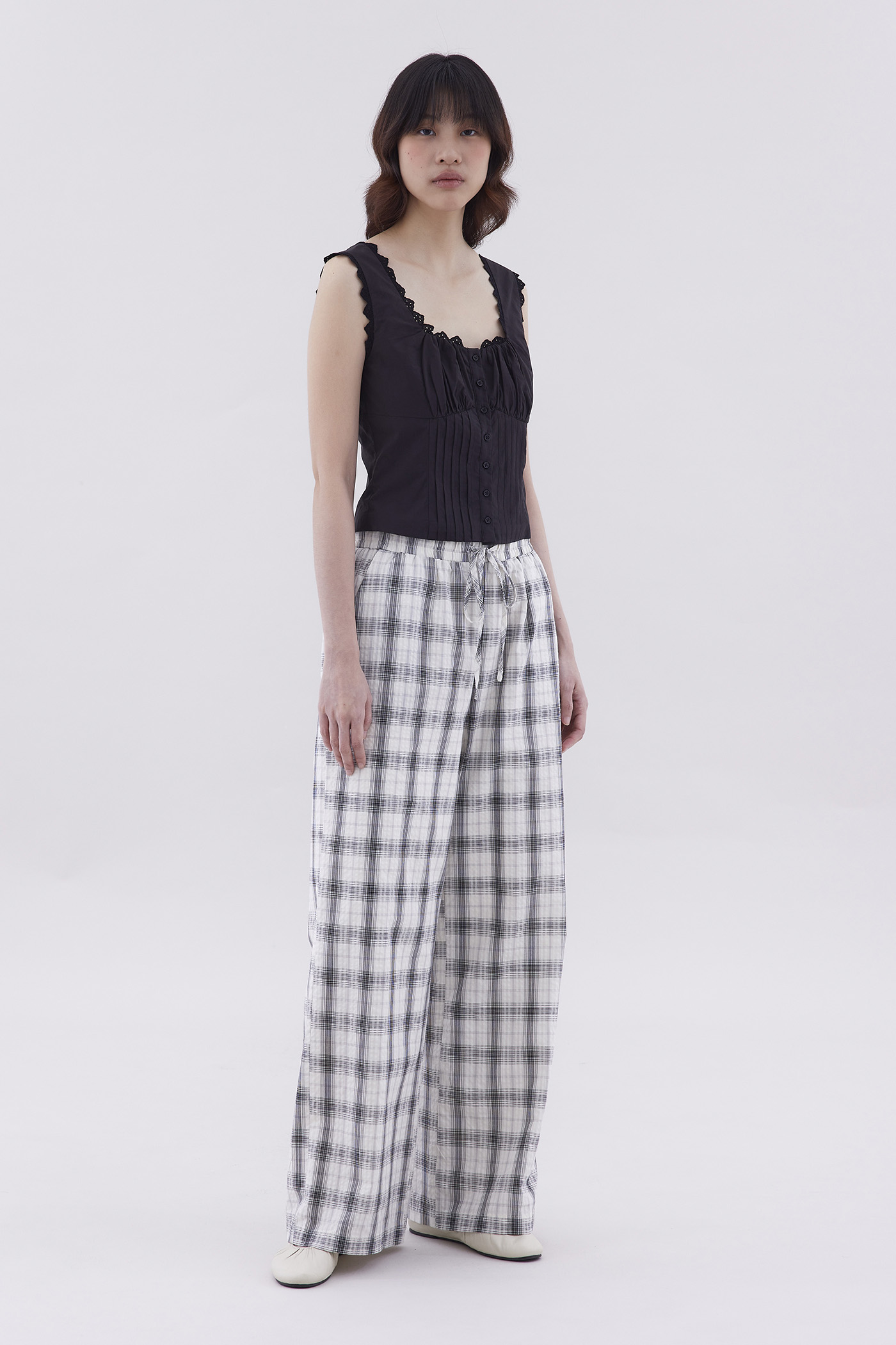 Up for anything. Made from crisp and softly structured cotton, these pants feature an elasticated drawstring waist and wide, straight legs. Worn in a relaxed fit.