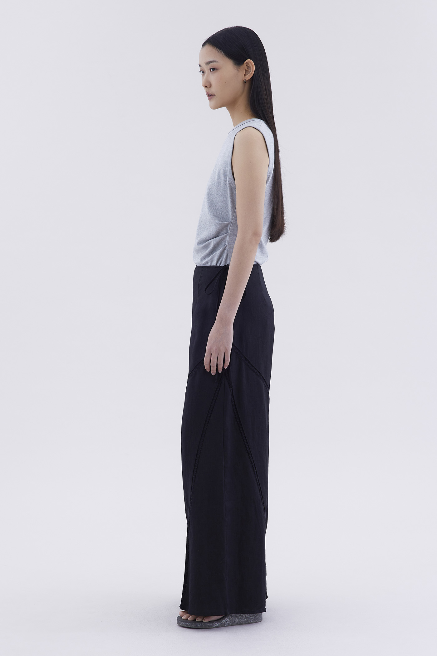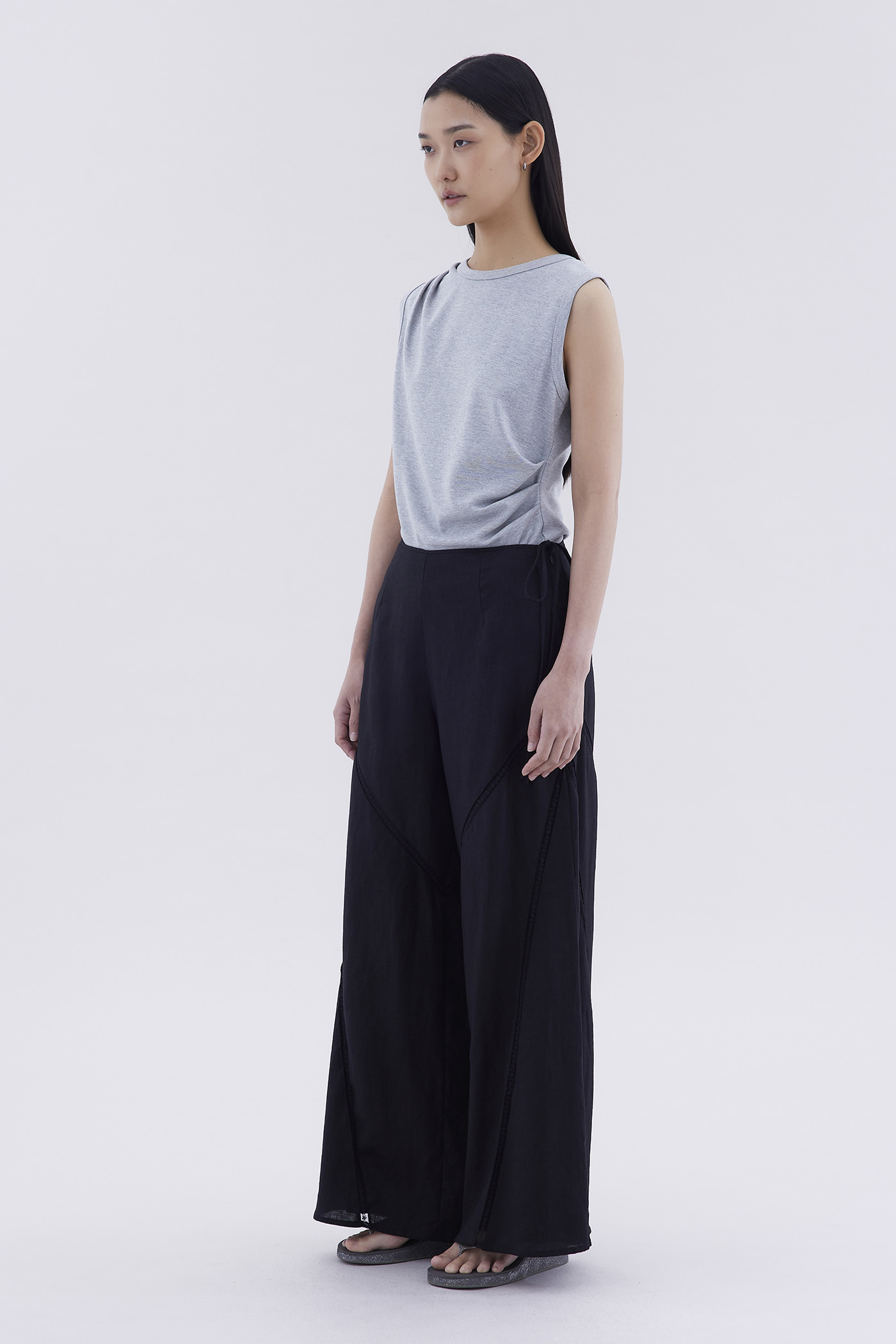 Details that count. Cut from airy and gently tailored 100% linen, these pants feature angled lace-trimmed panels, wide straight legs, as well as a seamless waist with a tie-strap and side zip closure.