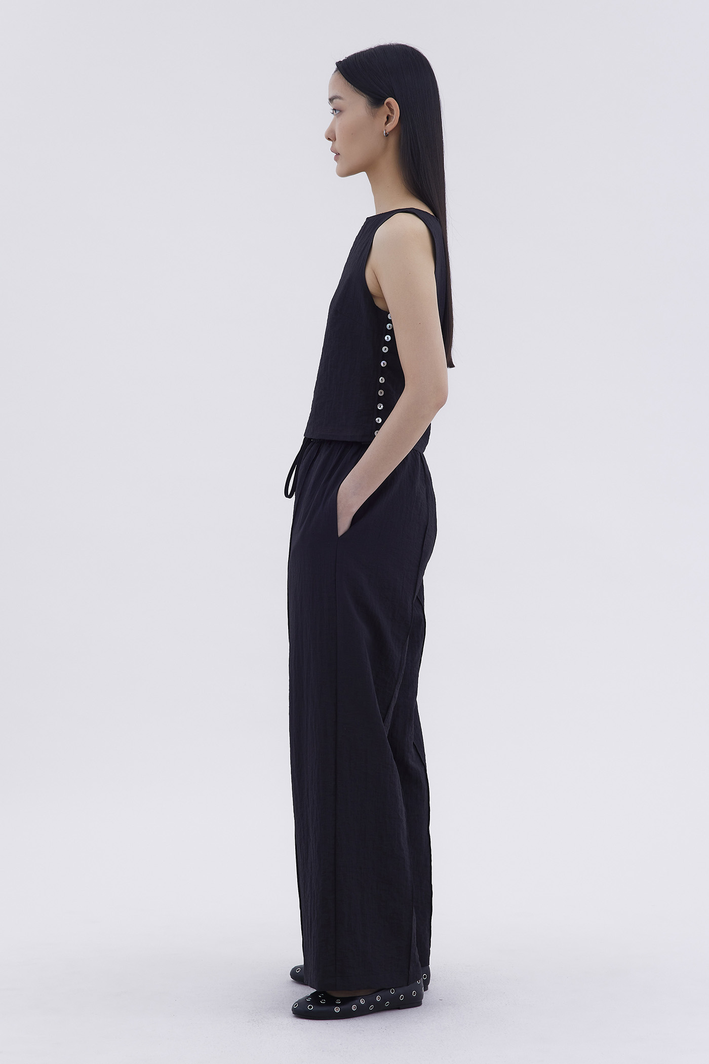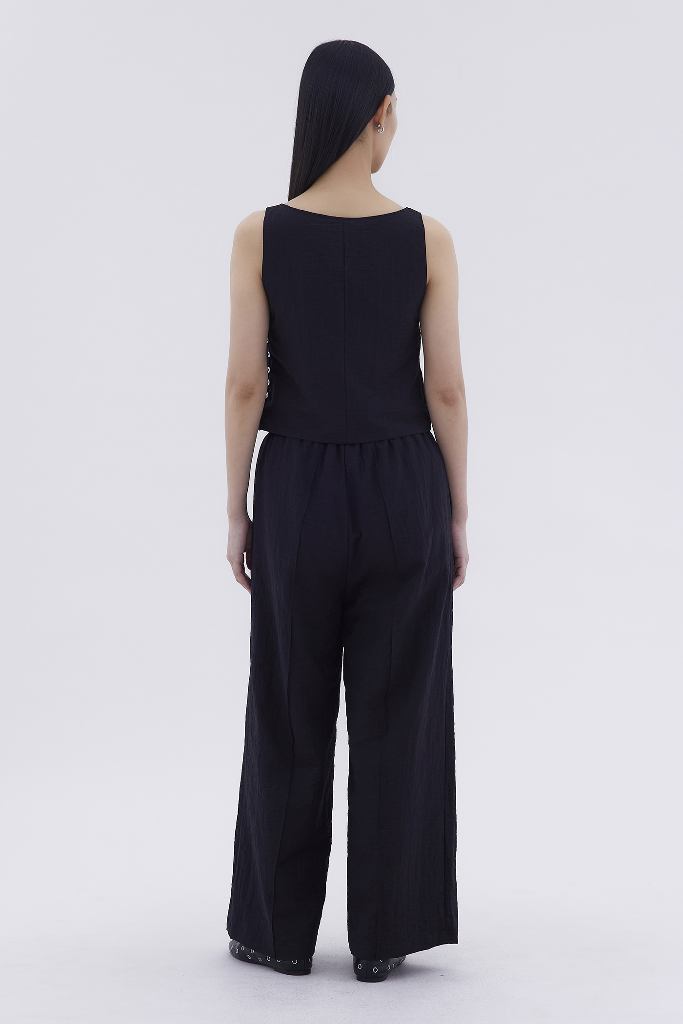 Easy does it. Made from light and textured fabric, these pants feature an elasticated drawstring waist and relaxed wide legs with a raised centre seam.