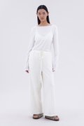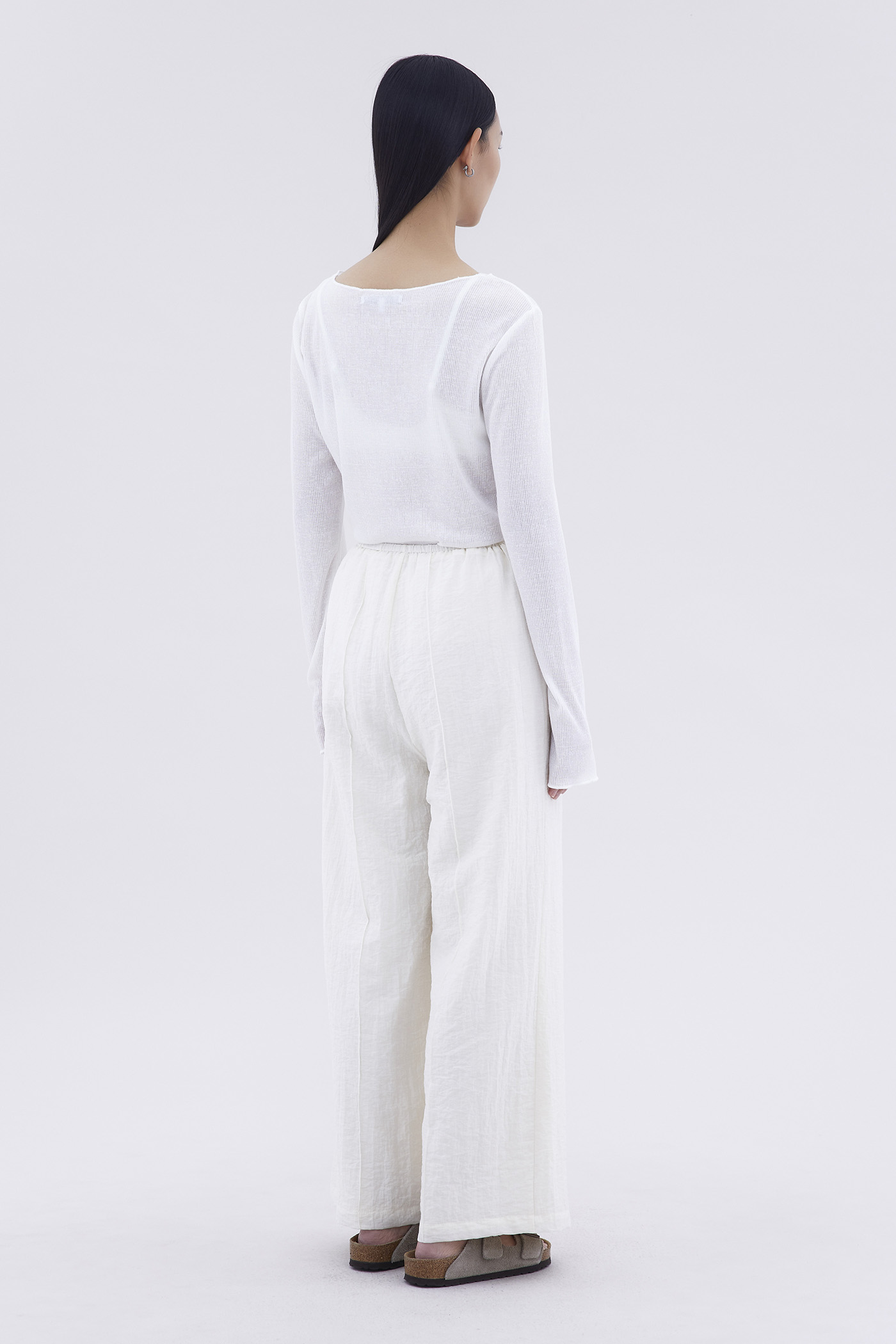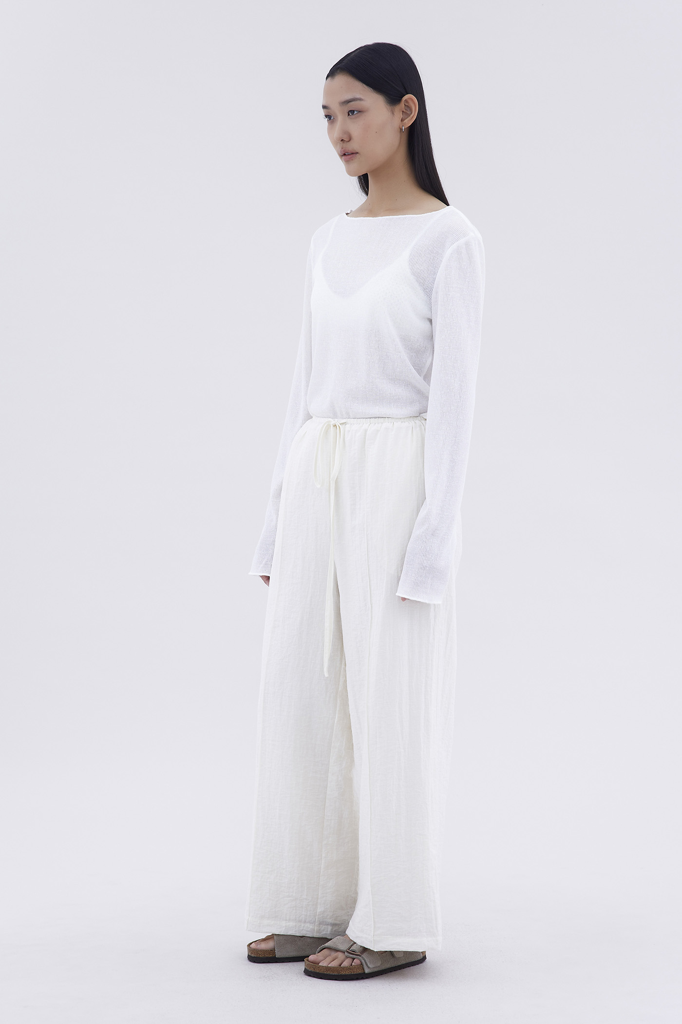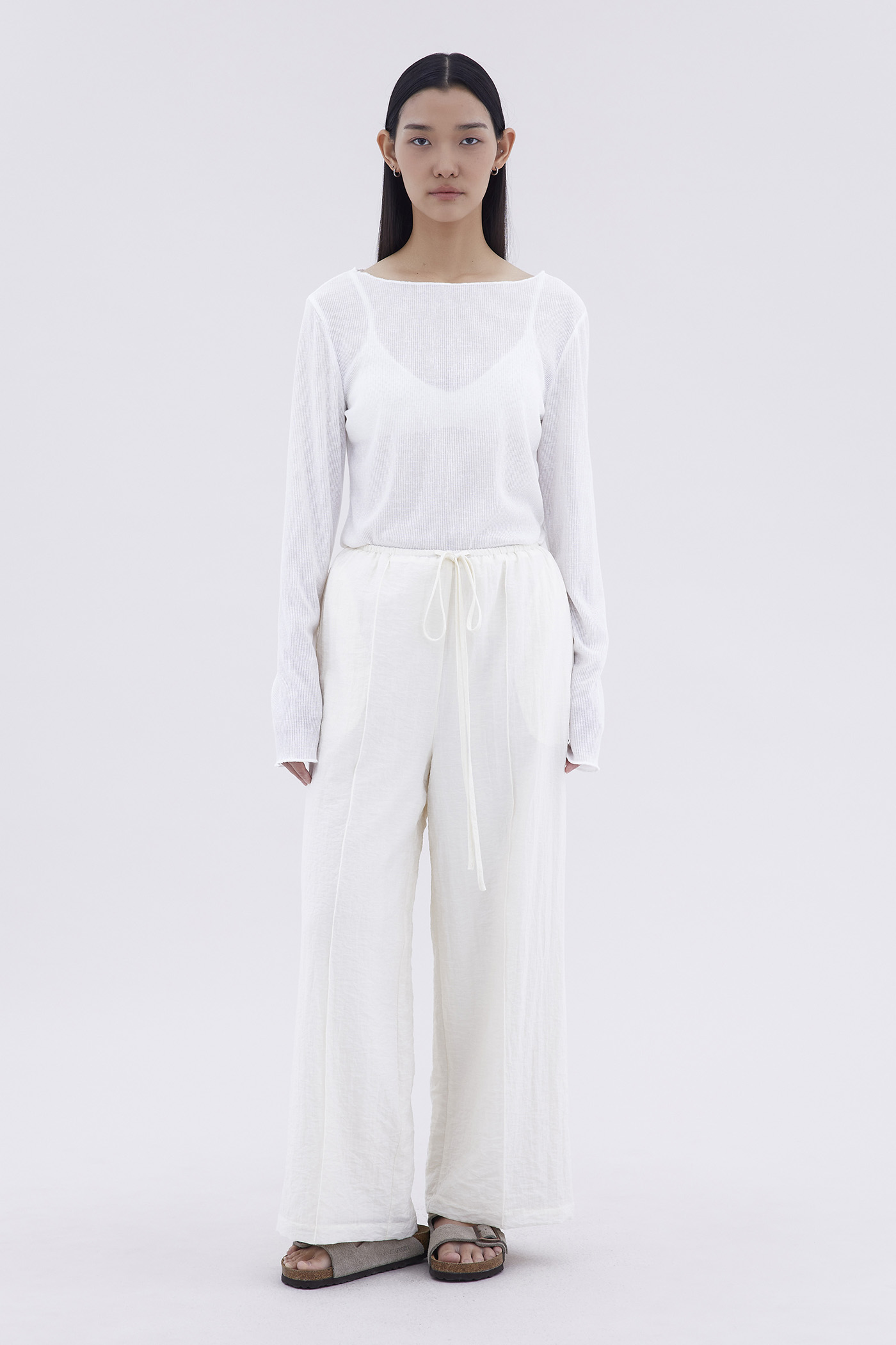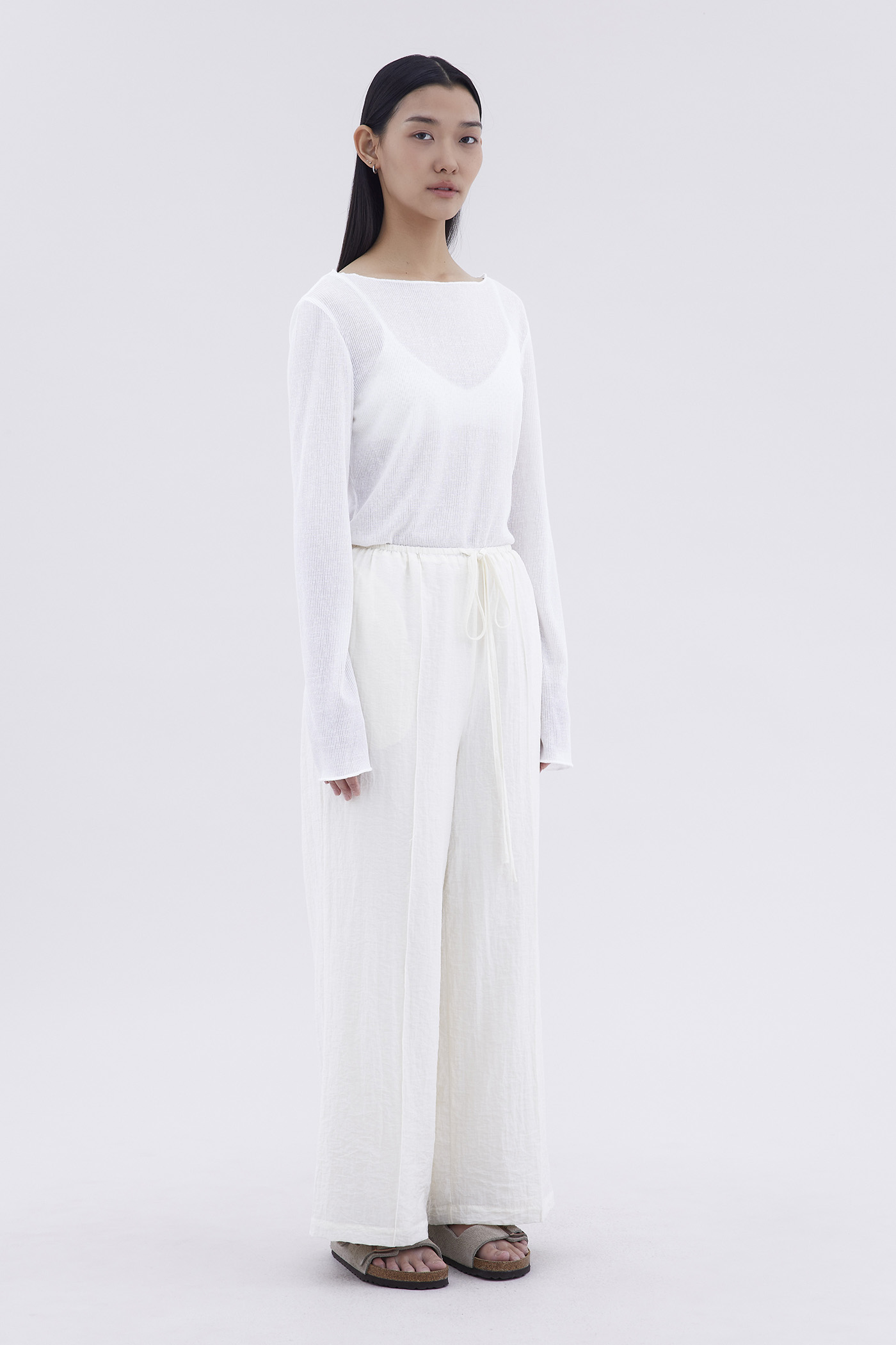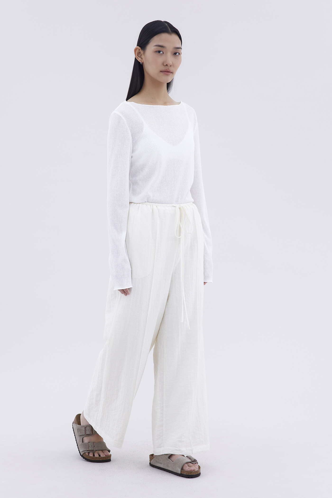 Easy does it. Made from light and textured fabric, these pants feature an elasticated drawstring waist and relaxed wide legs with a raised centre seam.