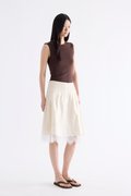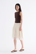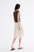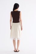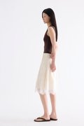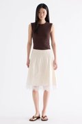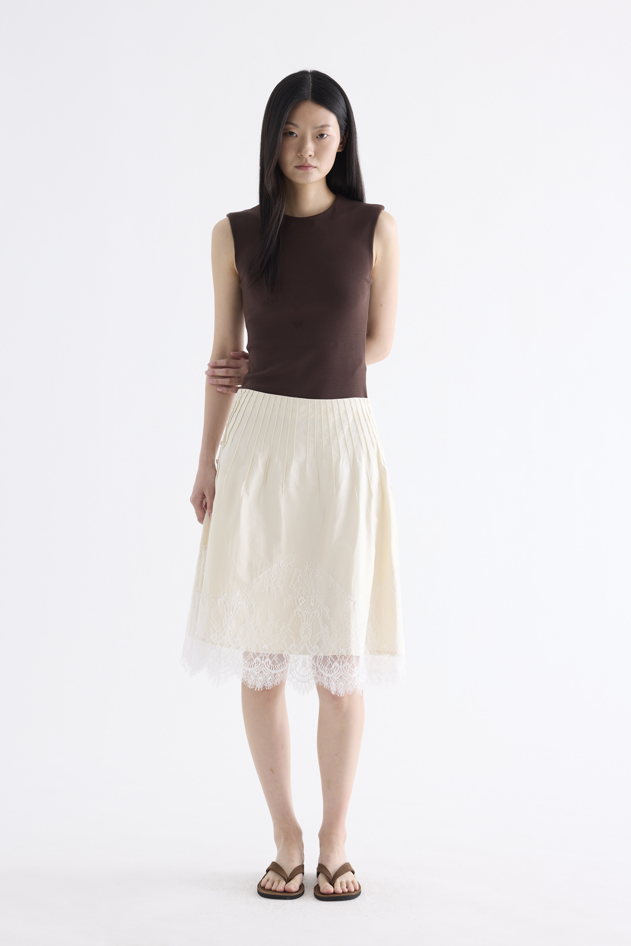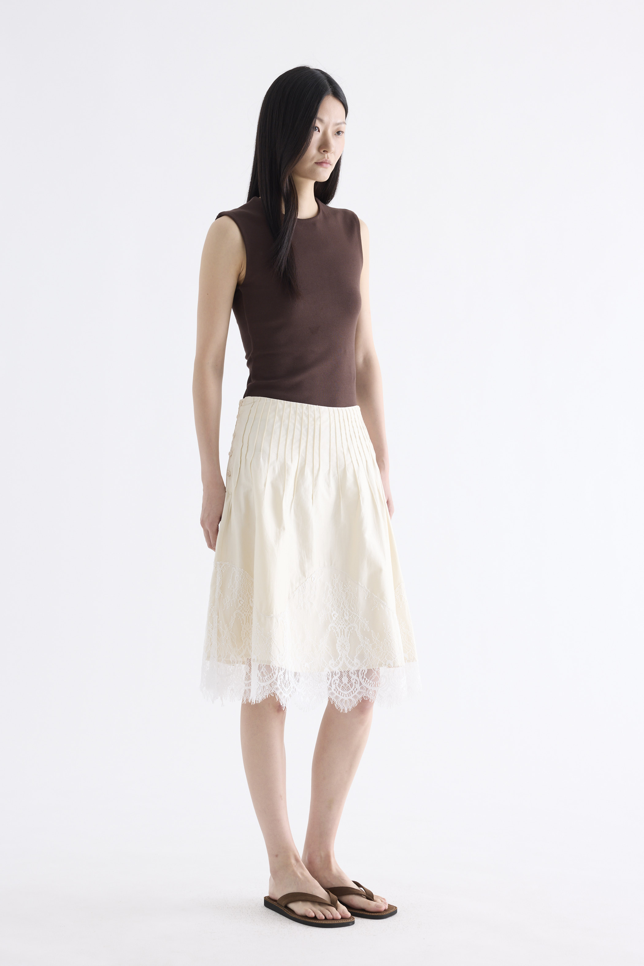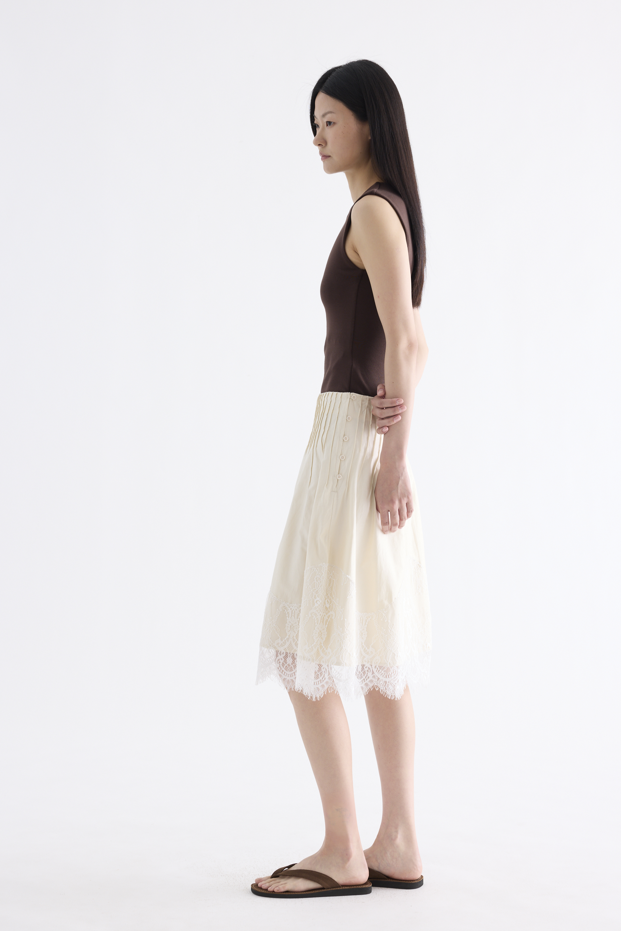 From the Postscript collection. Cut from smooth and softly structured cotton, this knee-length skirt features a non-elasticated waistband with loop-button closures at the side, pin-tuck pleats and lace along its hem. Fits relaxed in an A-line silhouette.