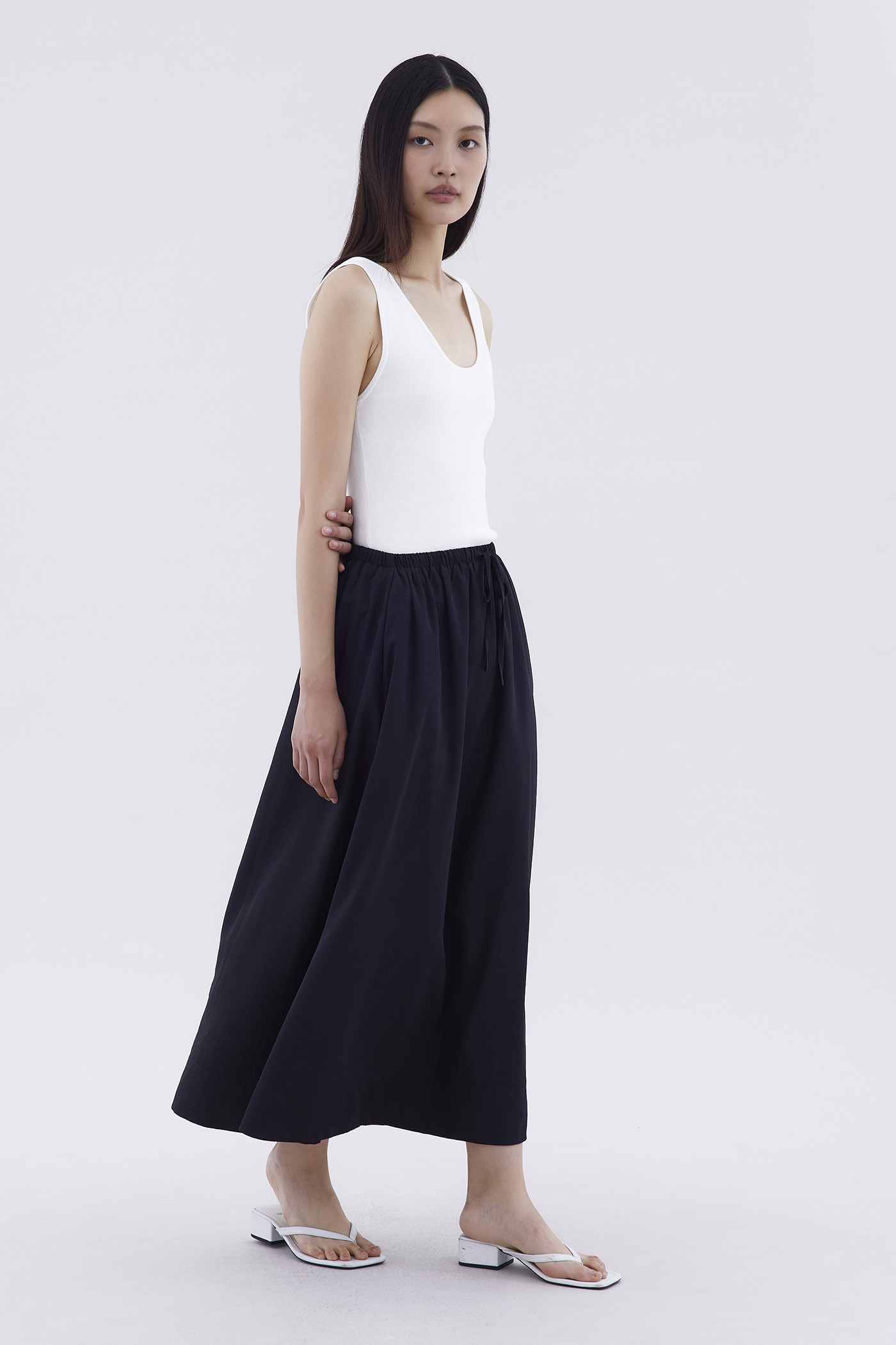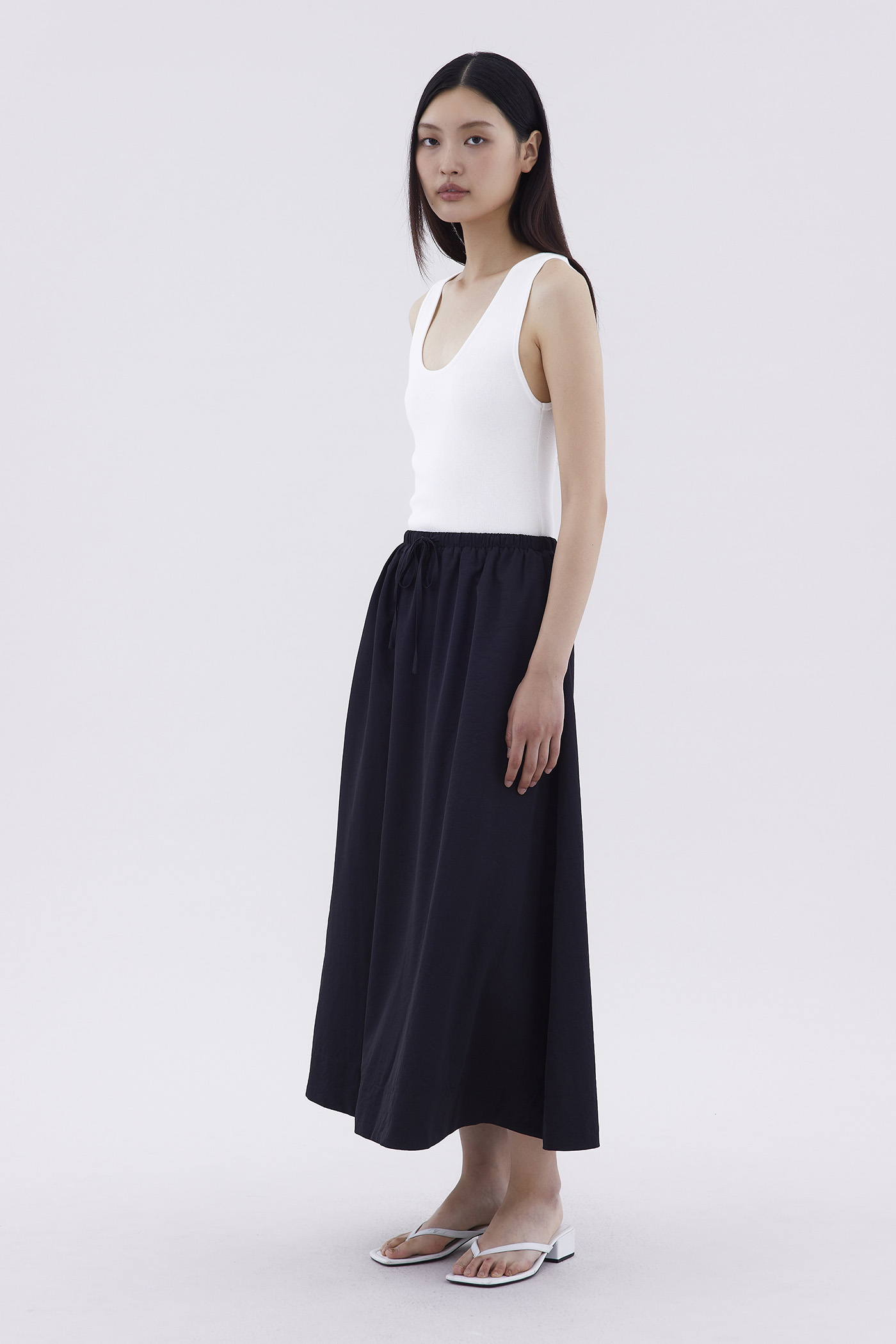 Ease up. Made from smooth and flowy fabric, this maxi skirt features an elasticated drawstring waistband and a relaxed A-line silhouette.