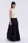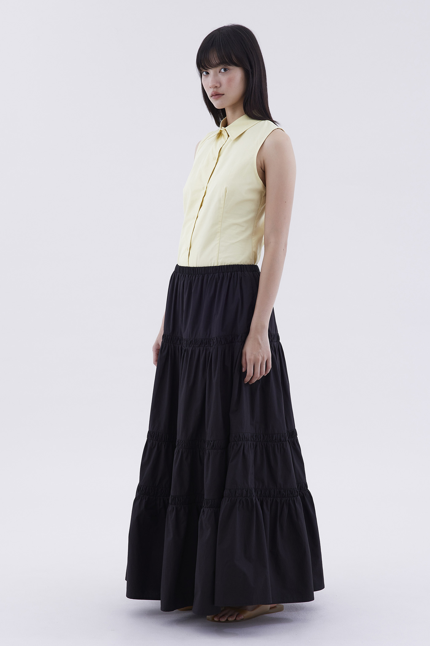 Go with the flow. Made from crisp and softly structured cotton, this maxi skirt features an elasticated waistband and a tiered A-line silhouette. Worn in a relaxed fit.