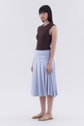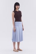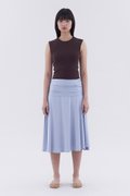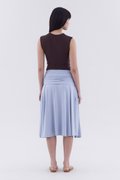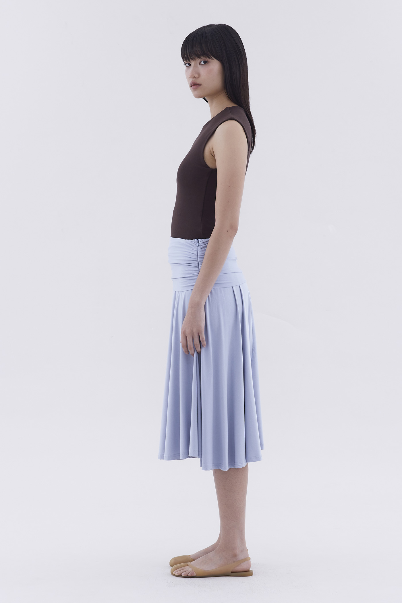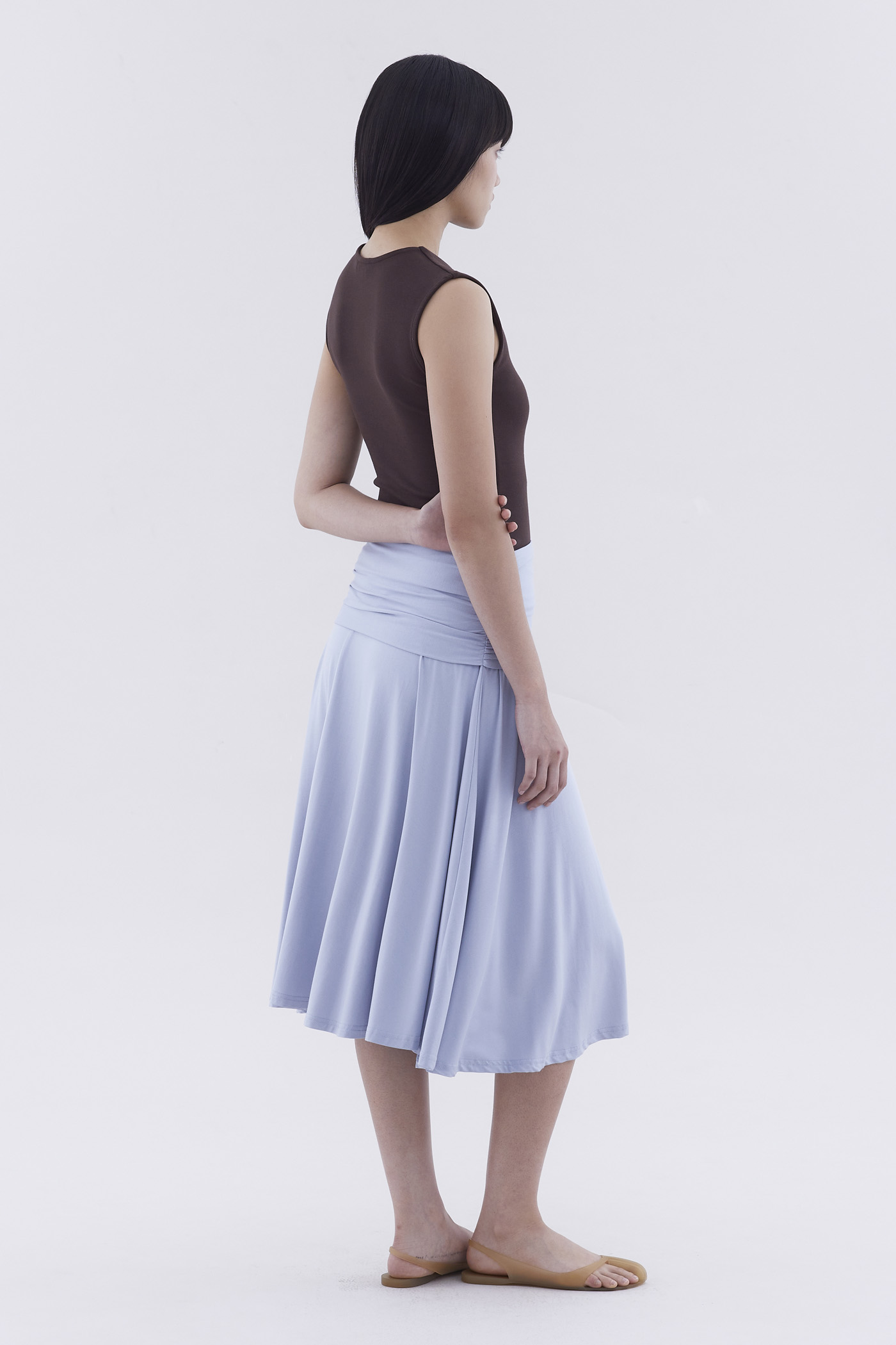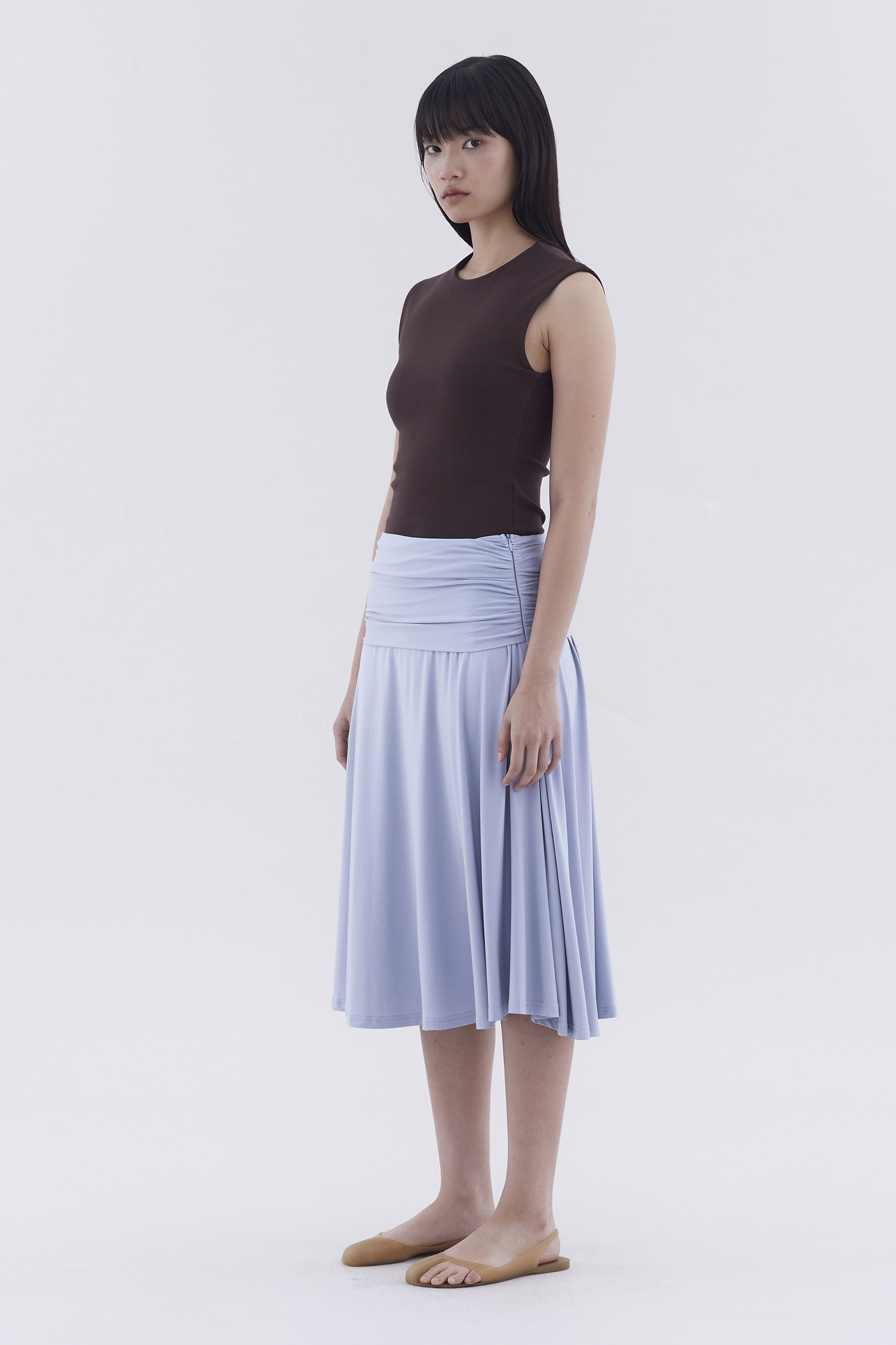 Fluid forms. Made from smooth and flowy fabric, this midi skirt features a stretchy and ruched foldover waist, as well as a side zip closure. Worn in a slim fit.