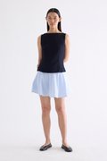 With an element of surprise. Made from smooth and softly structured fabric, this sleeveless tank features a boat neckline, panelled construction and buttoned keyhole opening at the back. Worn in a slim fit with a side zip closure.