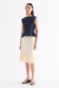 But first, textures. Cut from crisp and softly structured cotton, this sleeveless top features a smocked bodice, gathered round neckline and frilled hem. Fits slim.