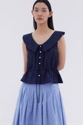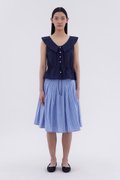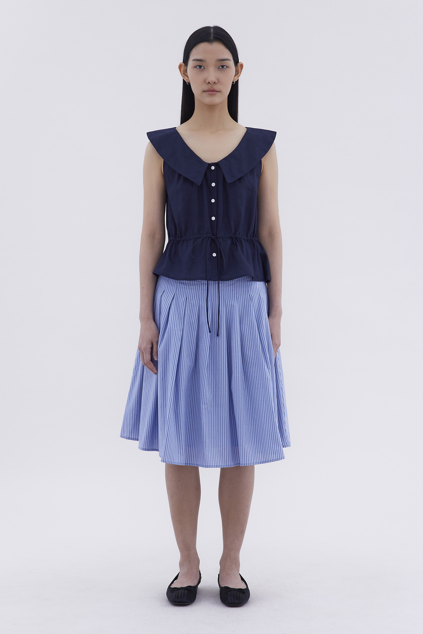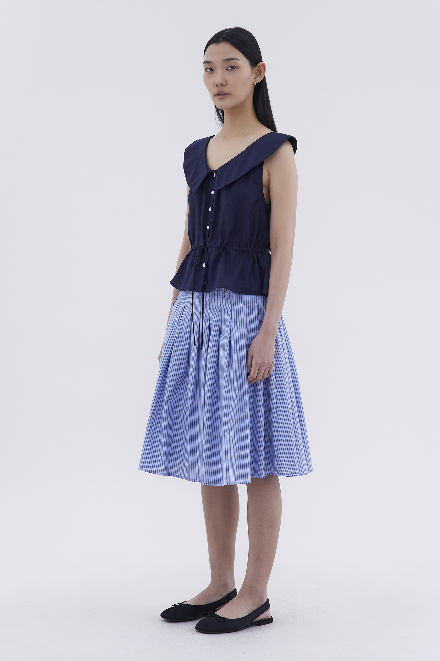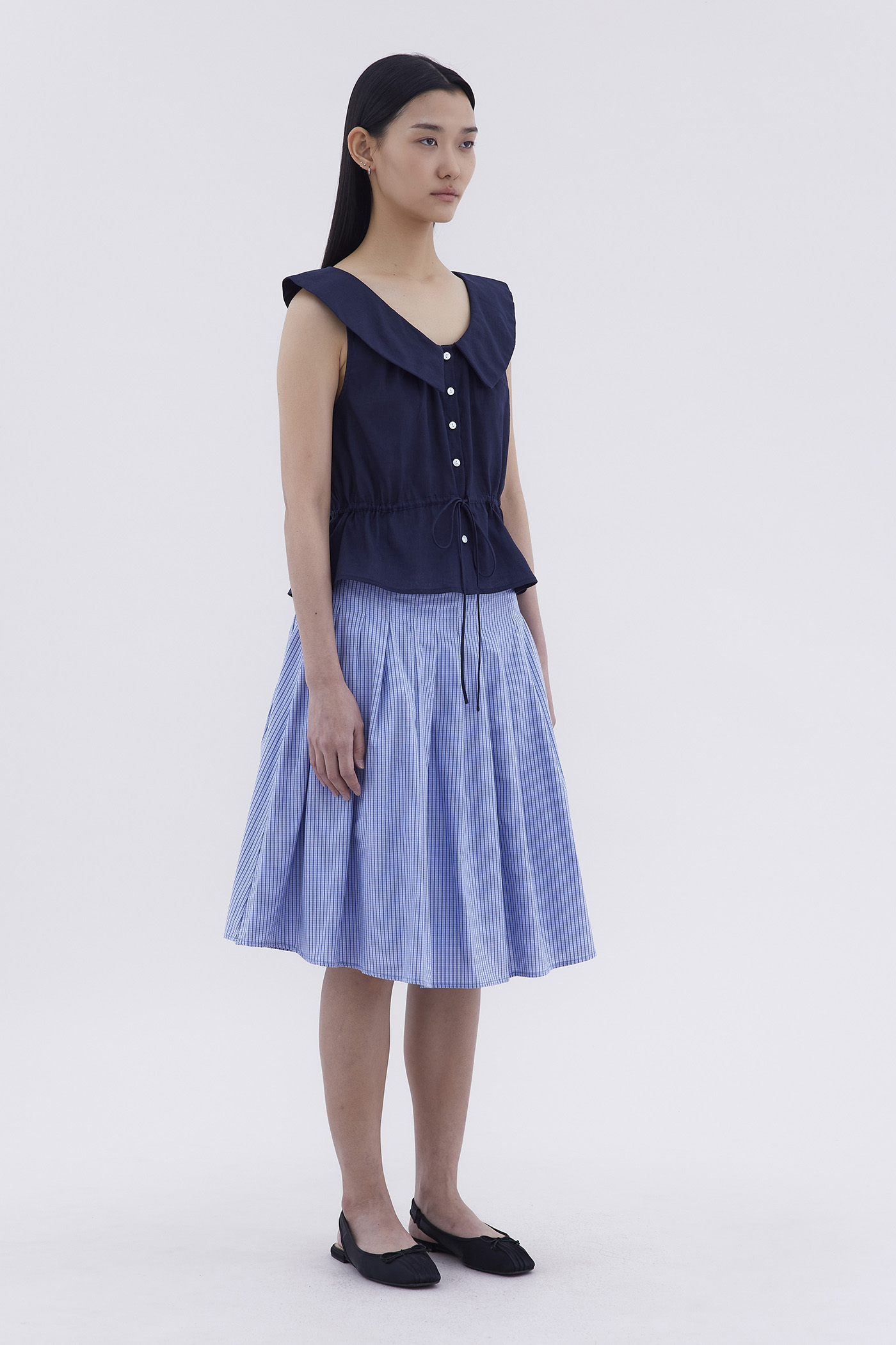 Go big or go home. Cut from airy and gently tailored 100% linen, this sleeveless top features oversized collars, a round neckline, a button-down front and an adjustable drawstring waist-tie. Worn in a slim fit.