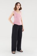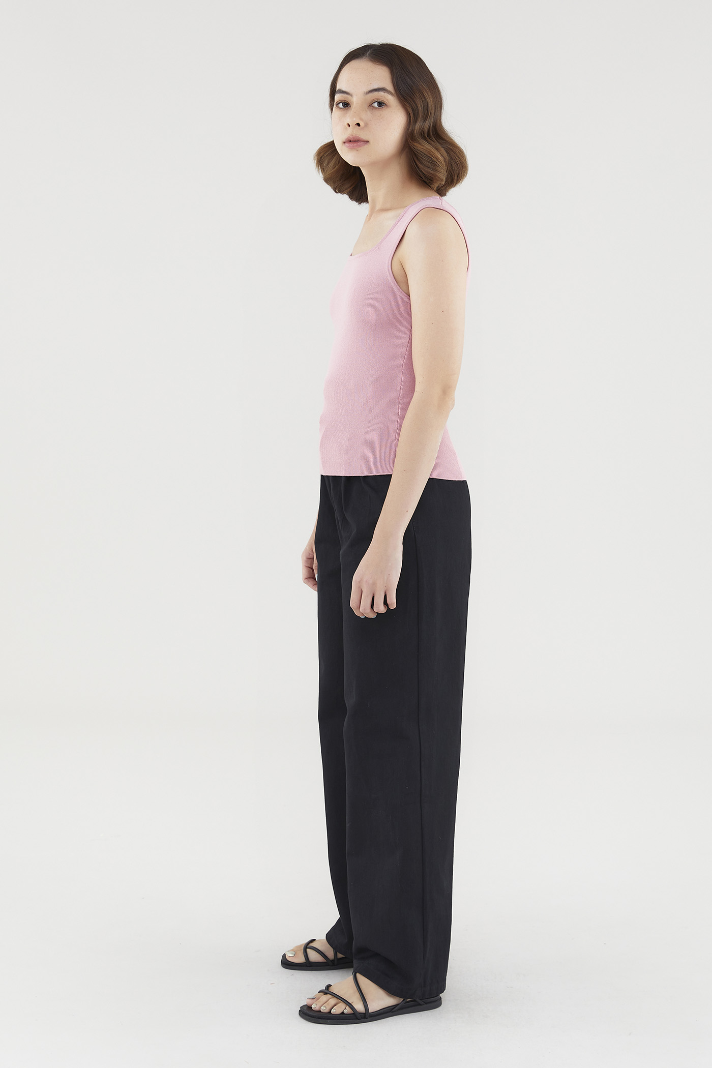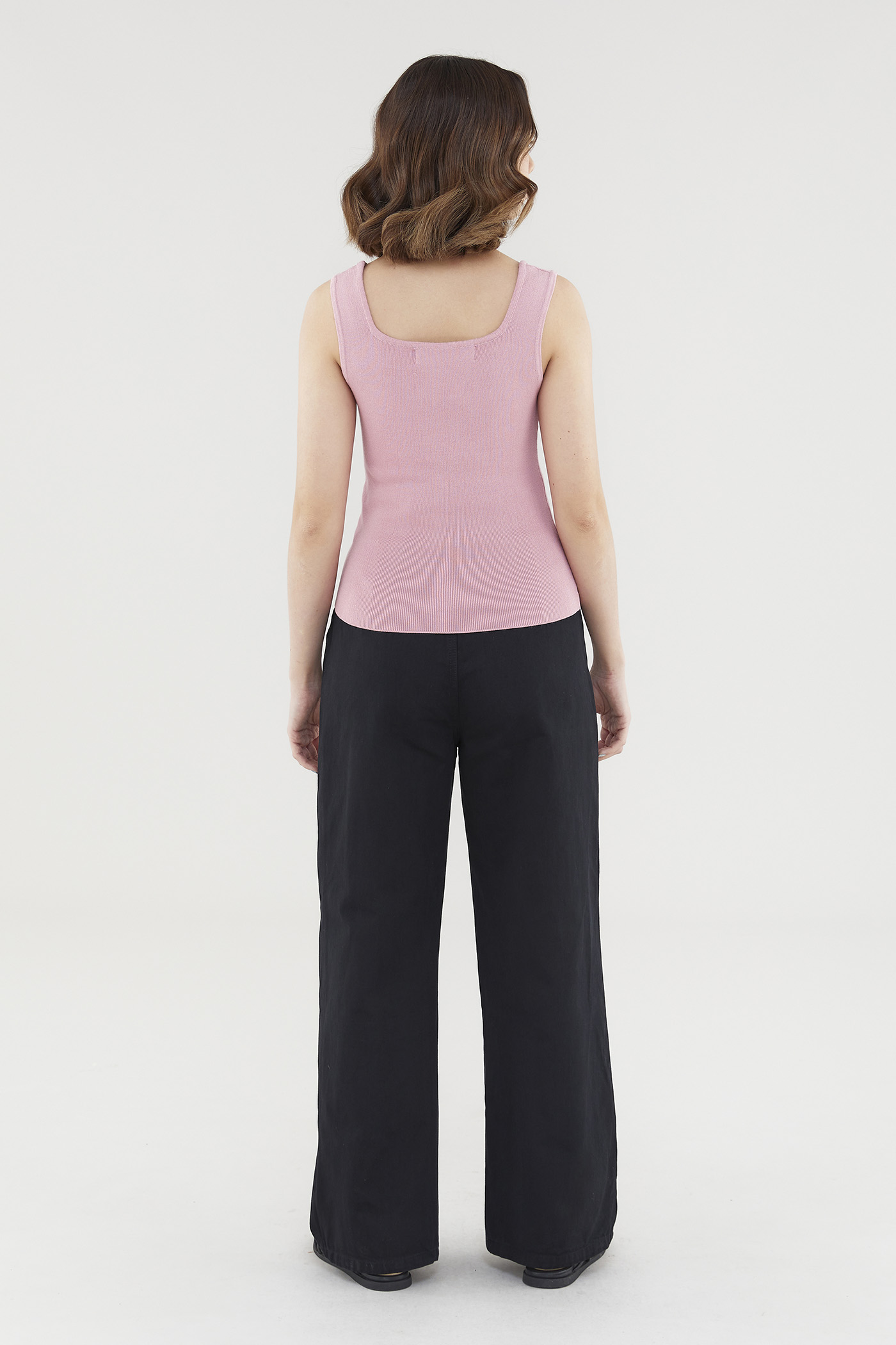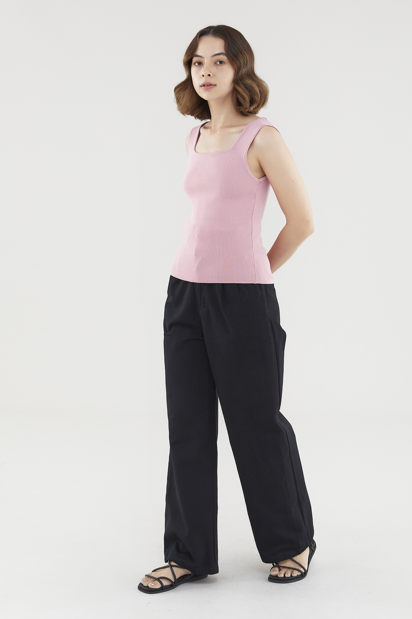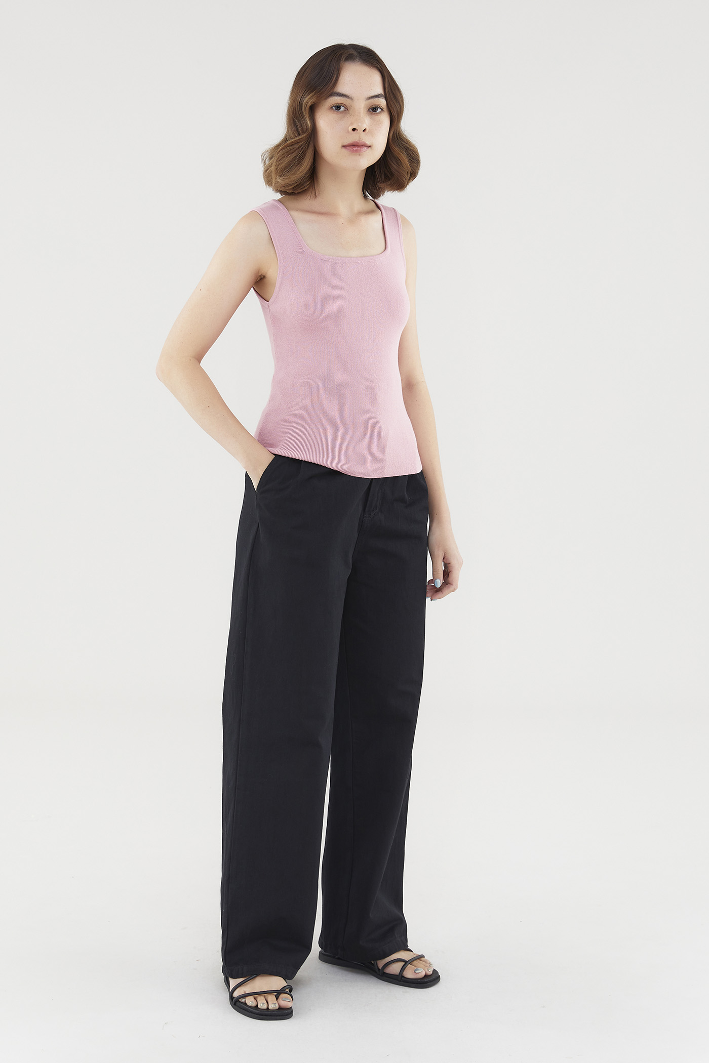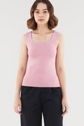 A not-too-hot, not-too-cold kind of top. Made from soft and stretchy knit fabric, this sleeveless tank flaunts a flattering square neckline, thick shoulder straps and a snug silhouette. Worn in a slim fit.