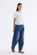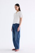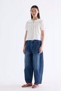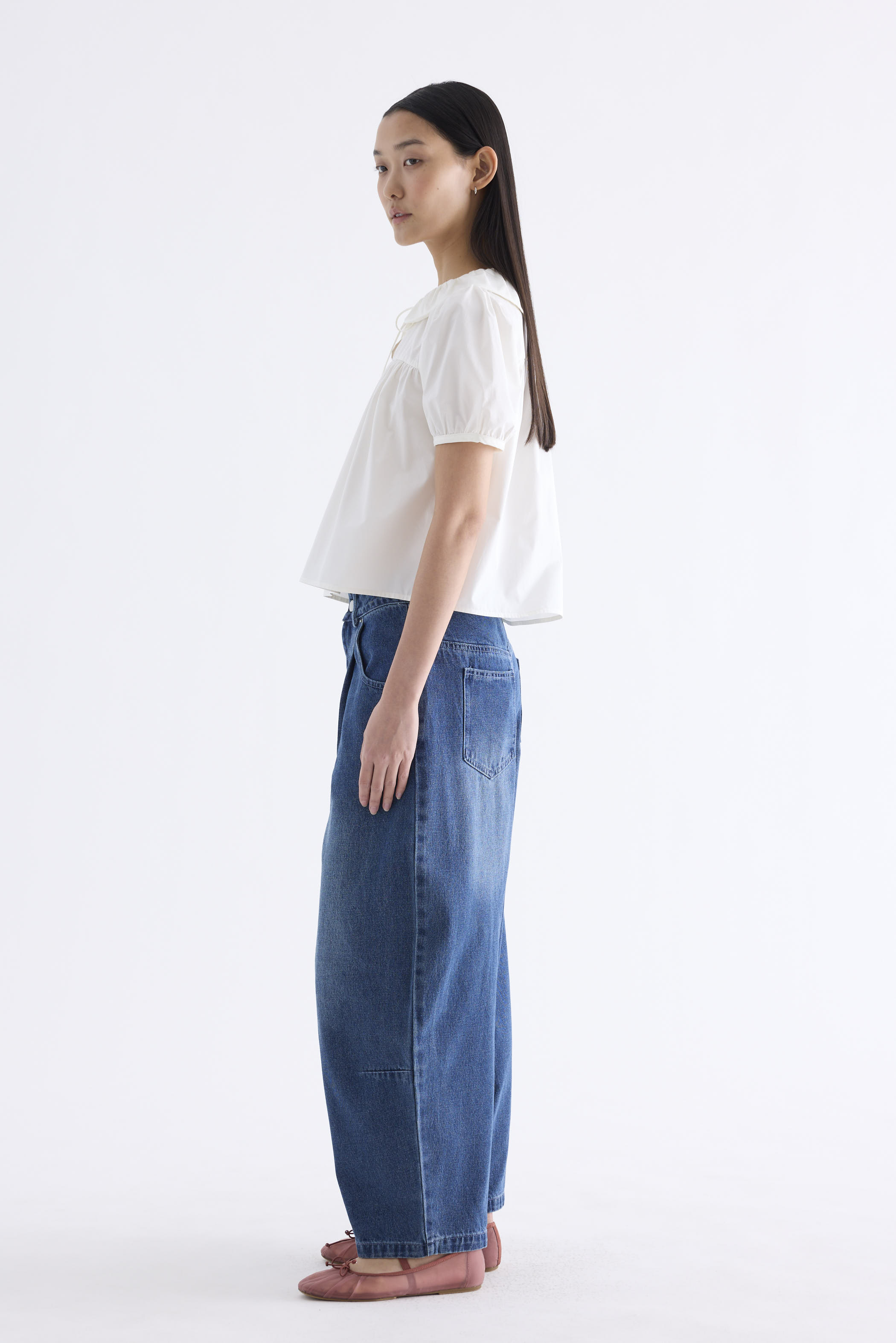 Playful touches. Cut from crisp and softly structured cotton, this blouse features gathered Peter Pan collars, short puffy sleeves and a front keyhole opening with a tie-strap. Fits flared and rela