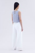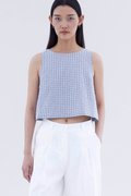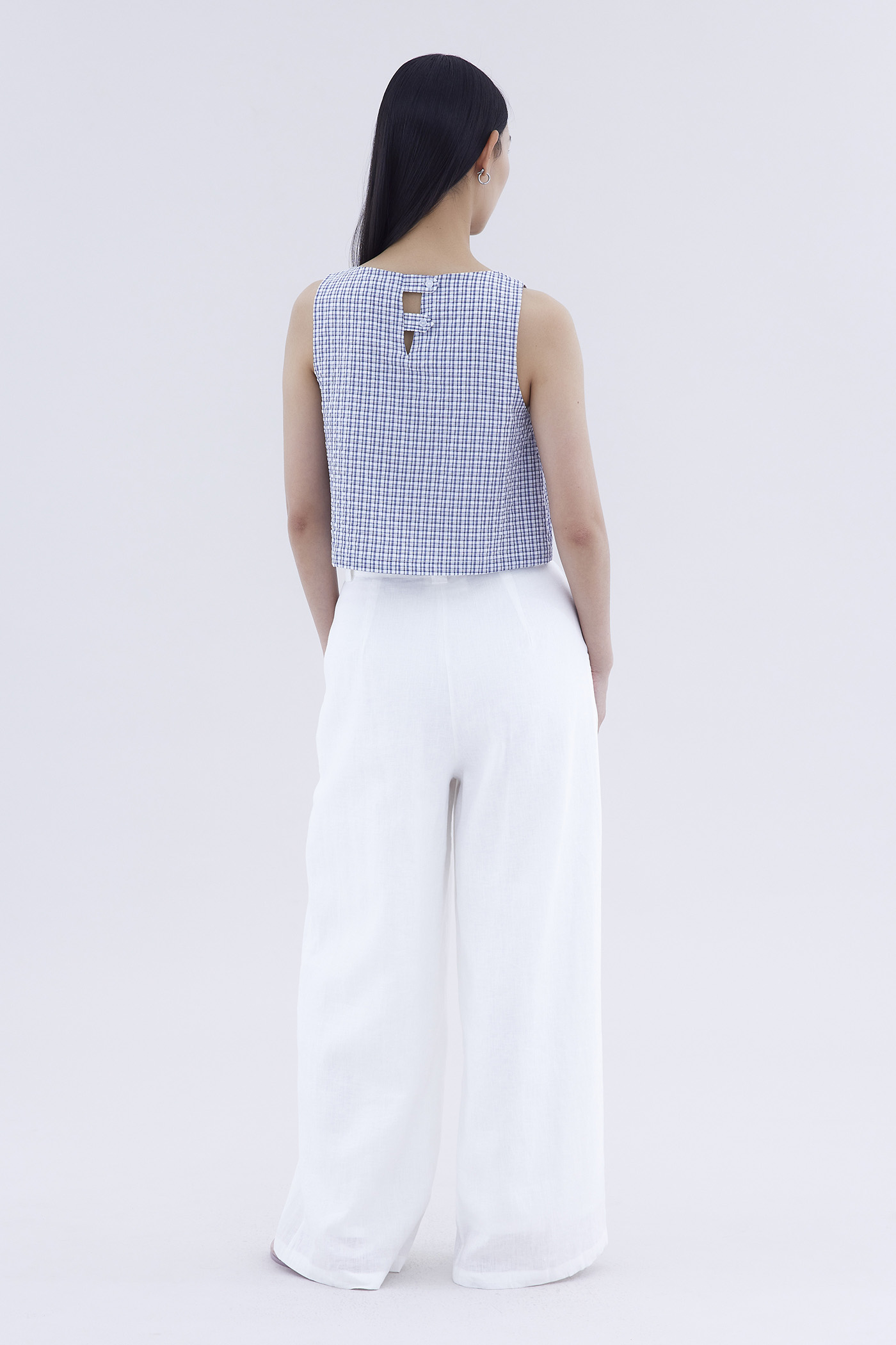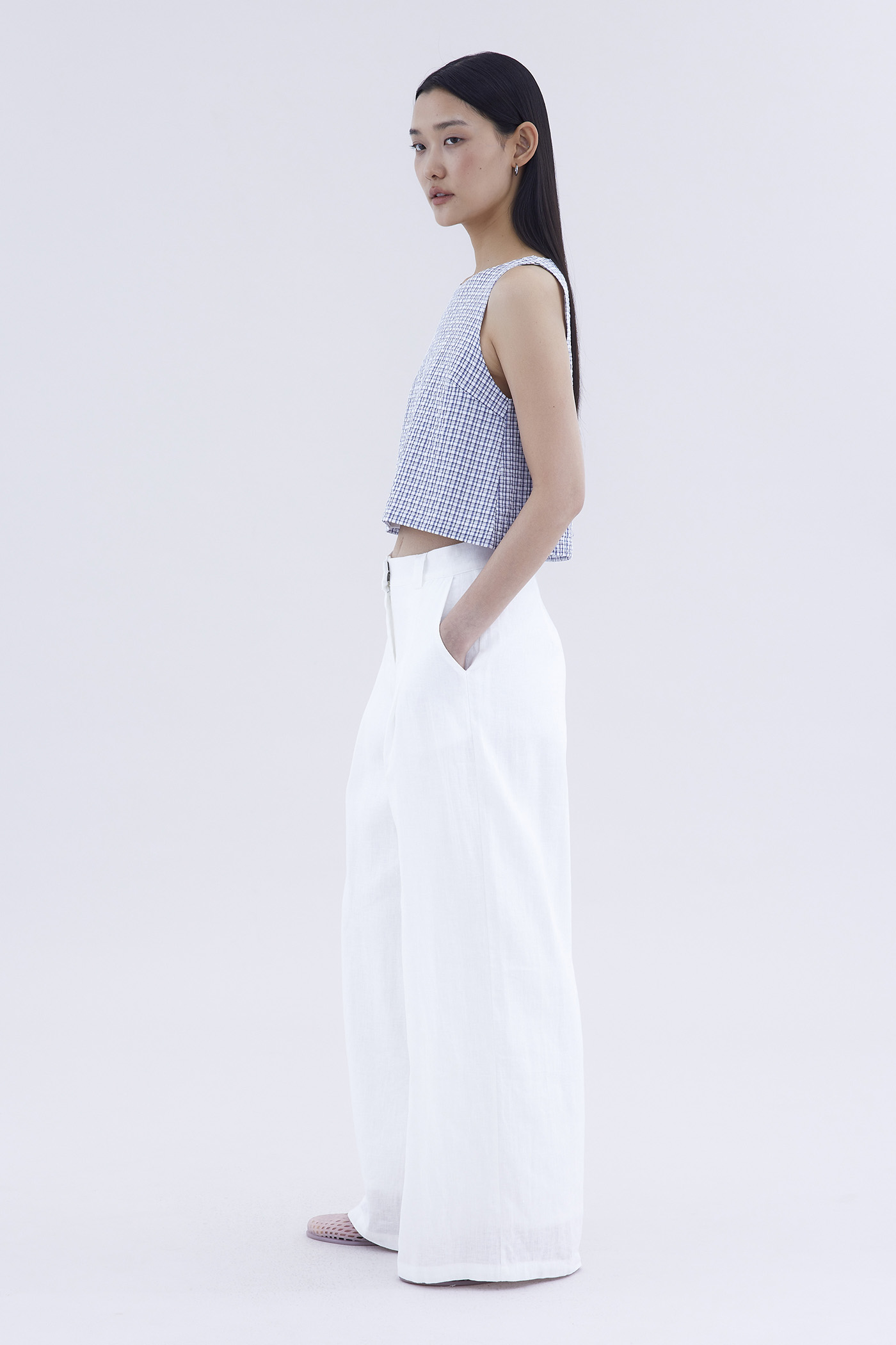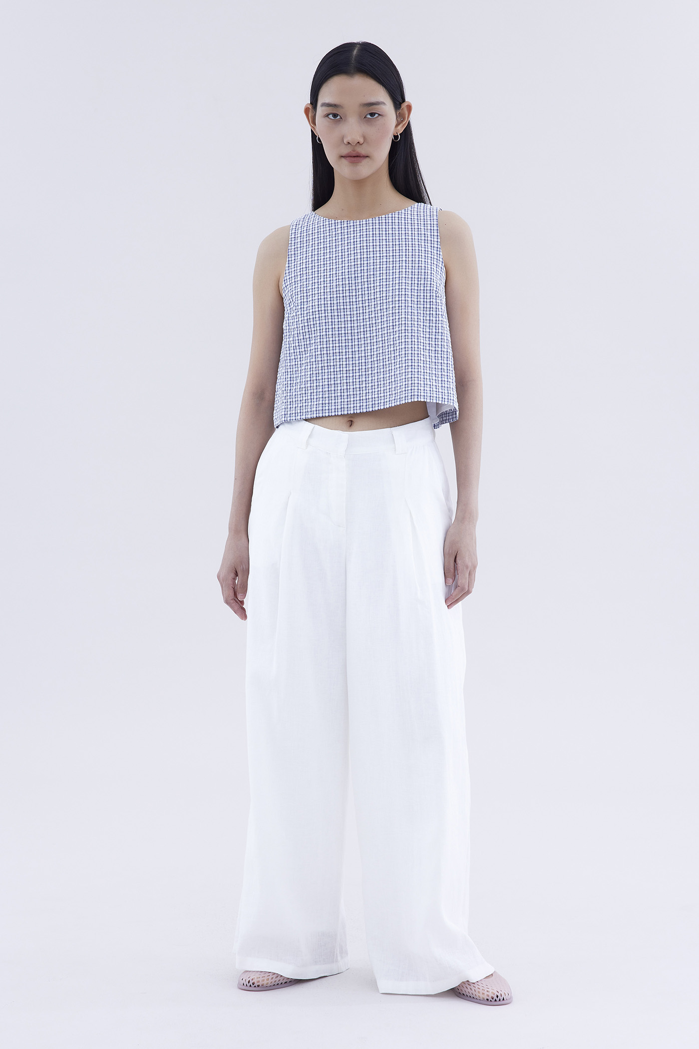 Clean lines. Made from airy and softly structured seersucker cotton, this sleeveless top features a round neckline and back buttons. Fits relaxed in a flattering boxy silhouette.