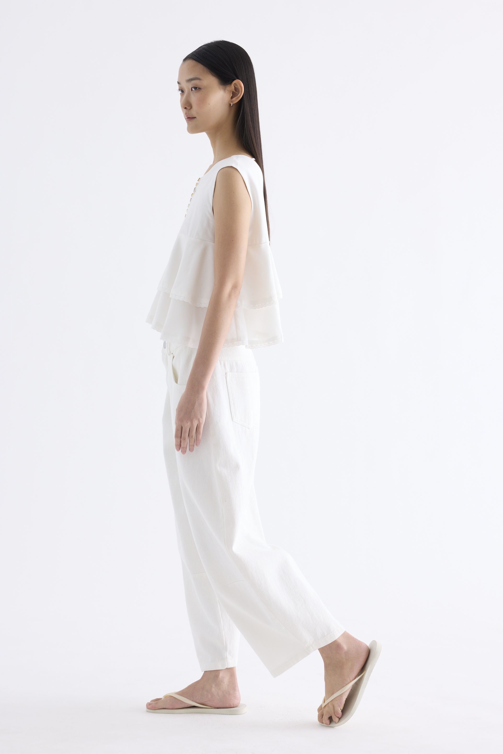 This piece is made from 100% Tencel lyocell, a cellulose fibre derived from wood pulp processed in a low-energy, low-water, closed-loop system. Fully biodegradable, its silky smooth, long-lasting and moisture-wicking properties also resists odours and winkles, making it suitable for multiple wears between washes to save more water and energy.