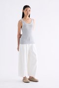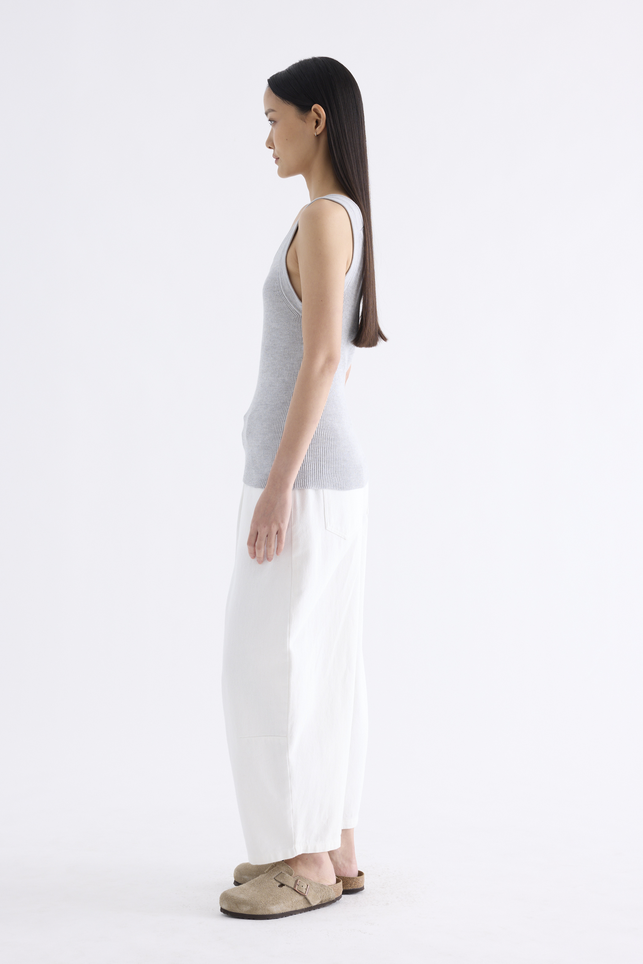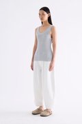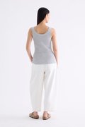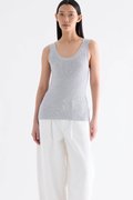 Mix-and-match essential. Made from soft and ribbed knit, this sleeveless tank features a scooped neckline and fitted silhouette.