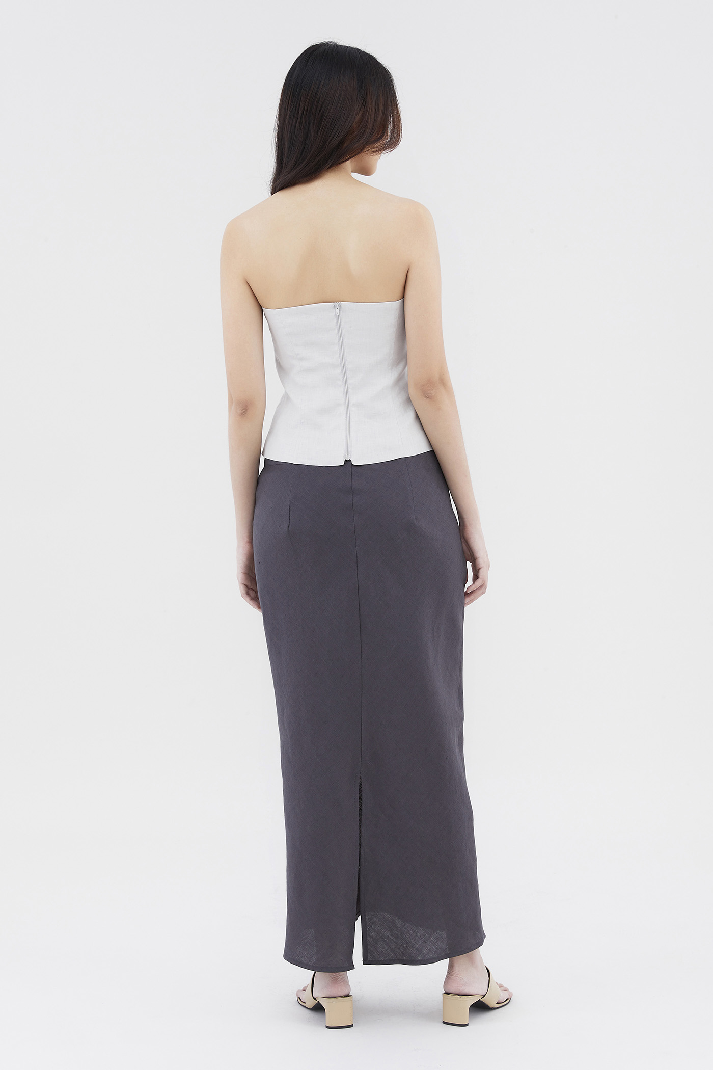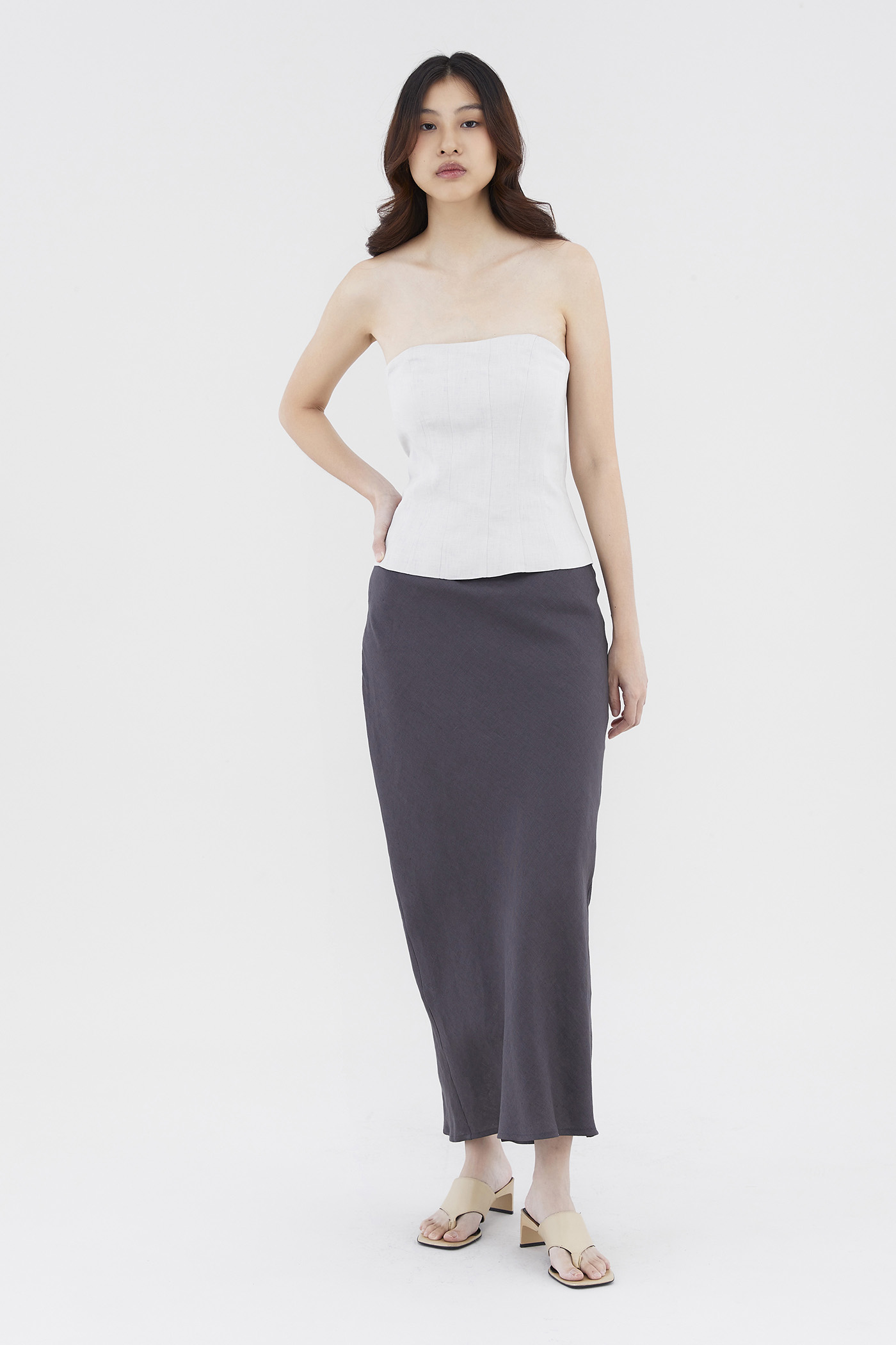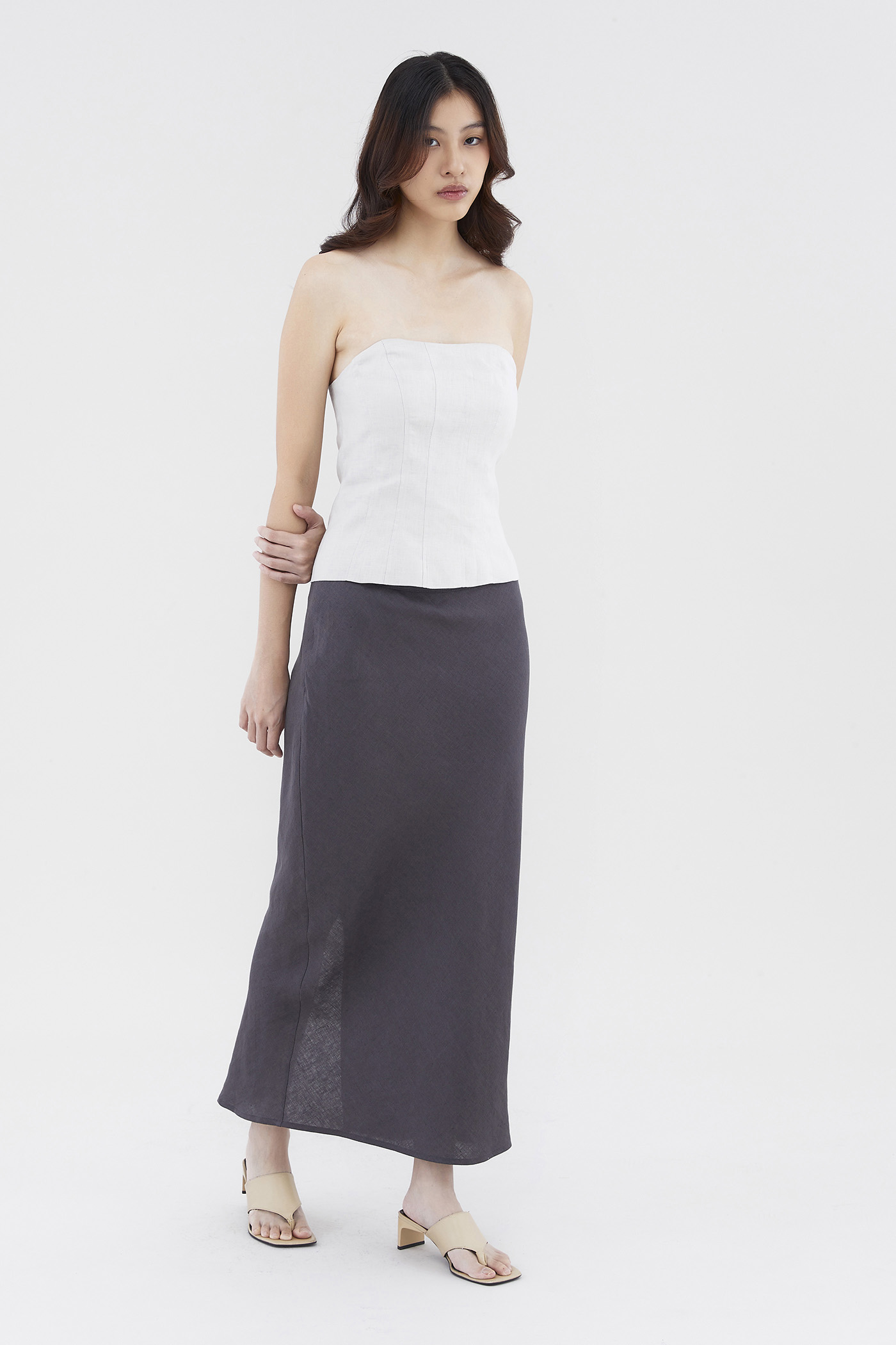 For sunny days. Cut from airy and lightweight 100% linen, this strapless top features a dipped neckline, back zip closure and panelling for polish. Worn in a slim fit.