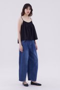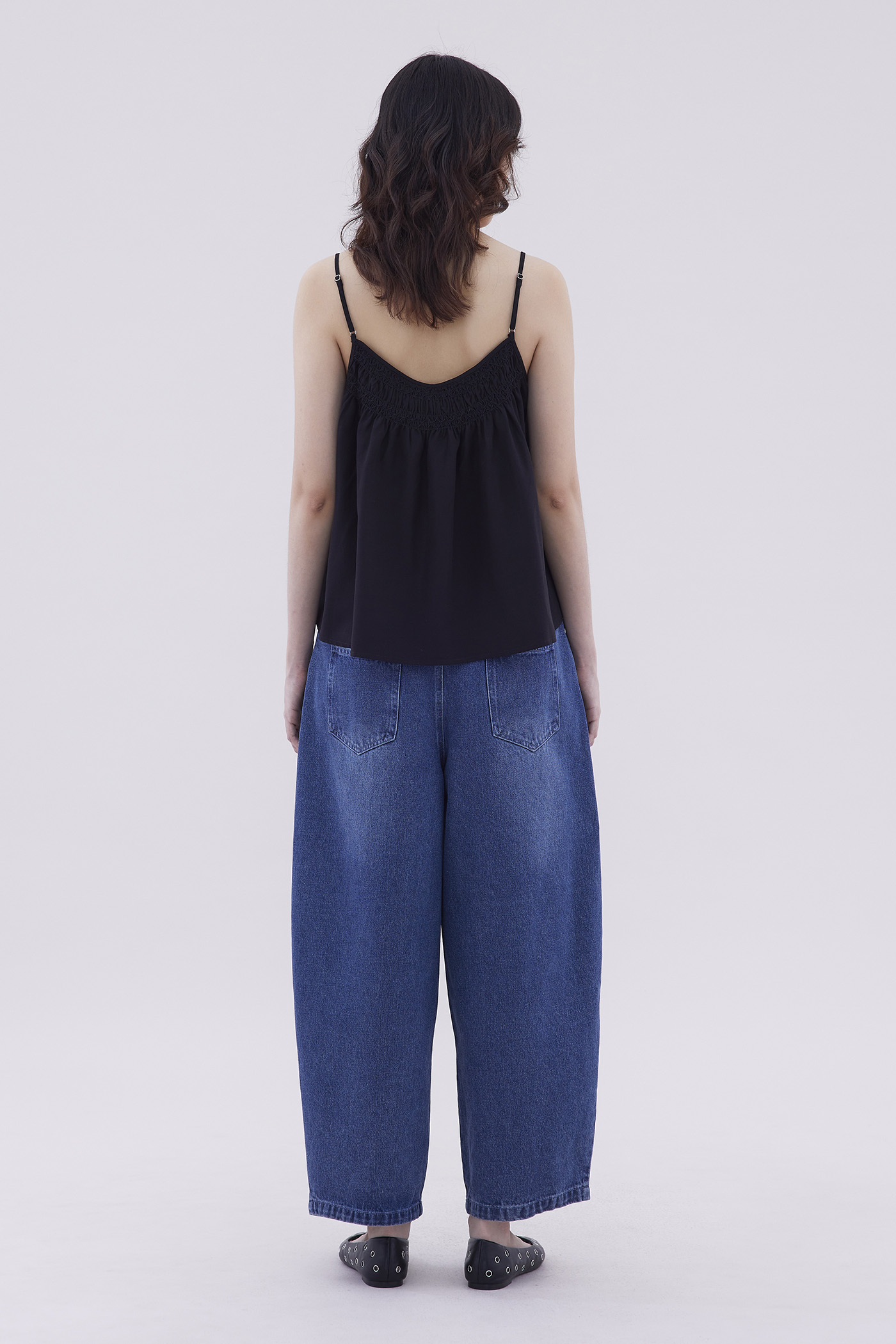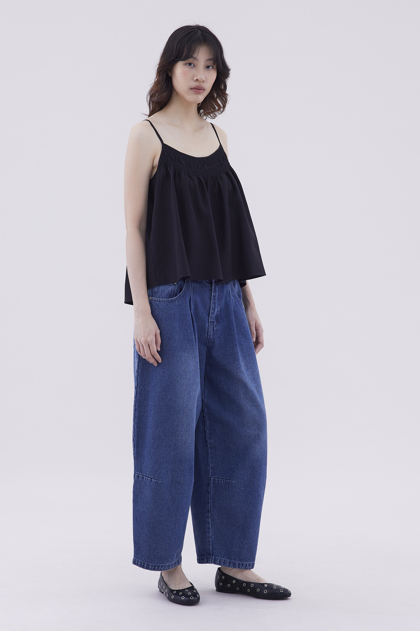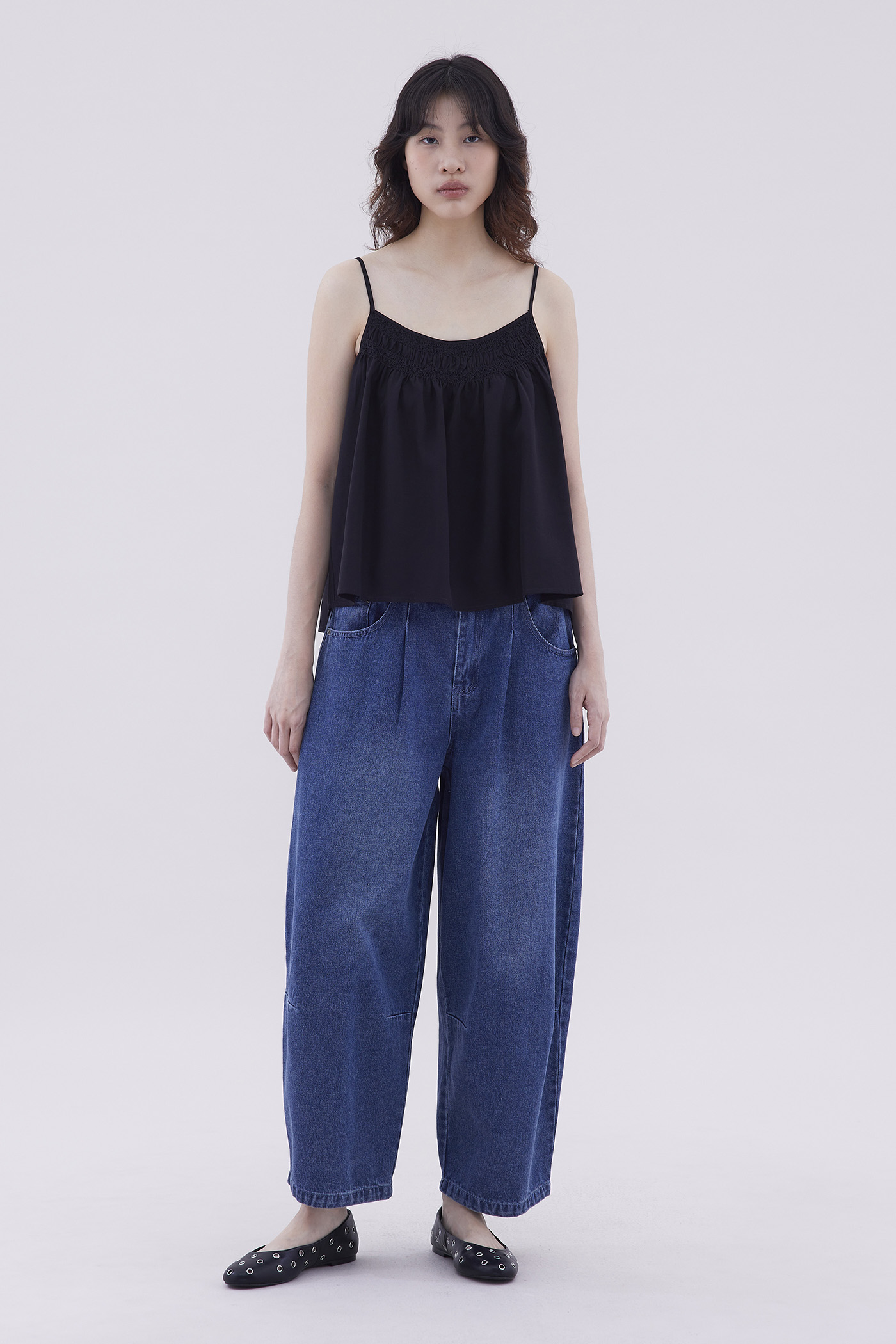 Catchy necklines. Made from light and flowy fabric, this sleeveless camisole features a smocked neckline and slim adjustable shoulder straps. Fits relaxed in a flared silhouette.