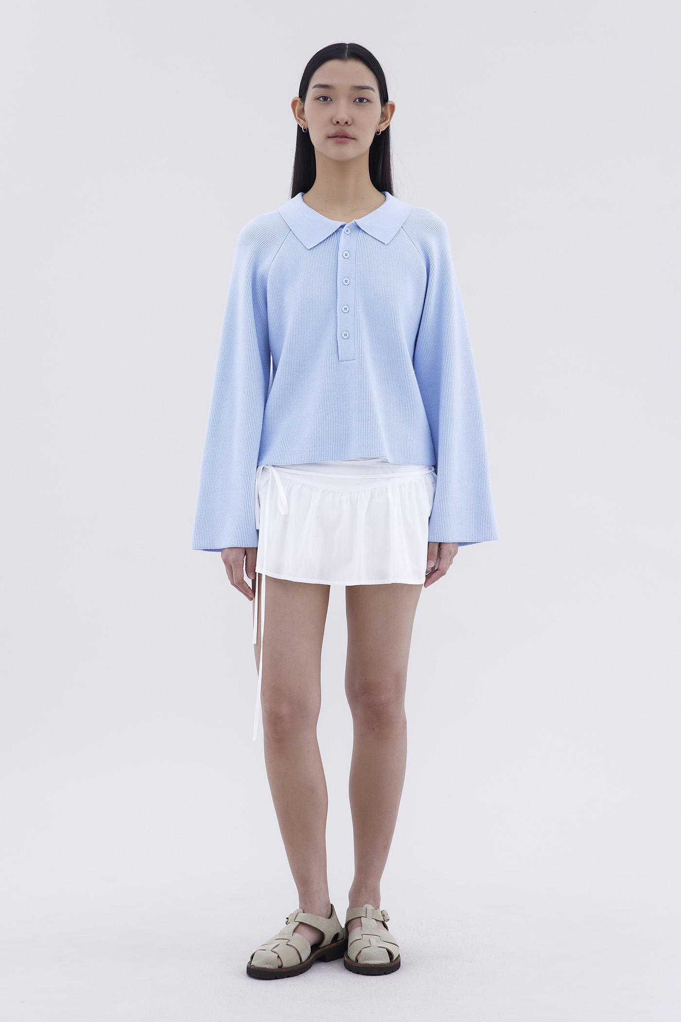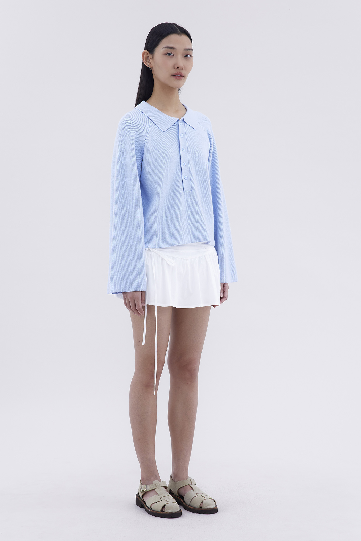 Bundle up. Made from soft and cosy knit, this sweater features a collared neckline and front buttons. Worn in an oversized fit.