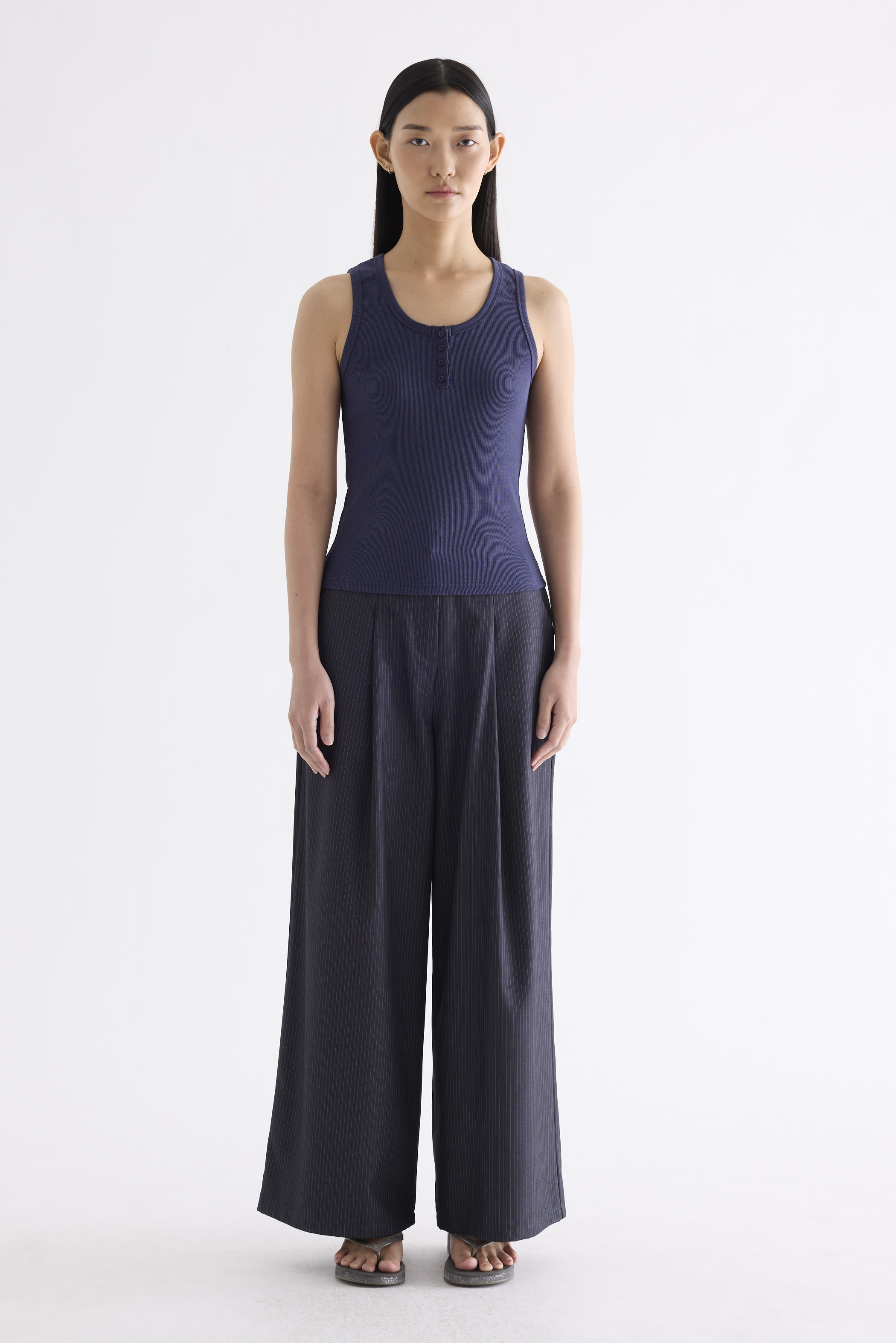Milene Ribbed Half-Button Tank
