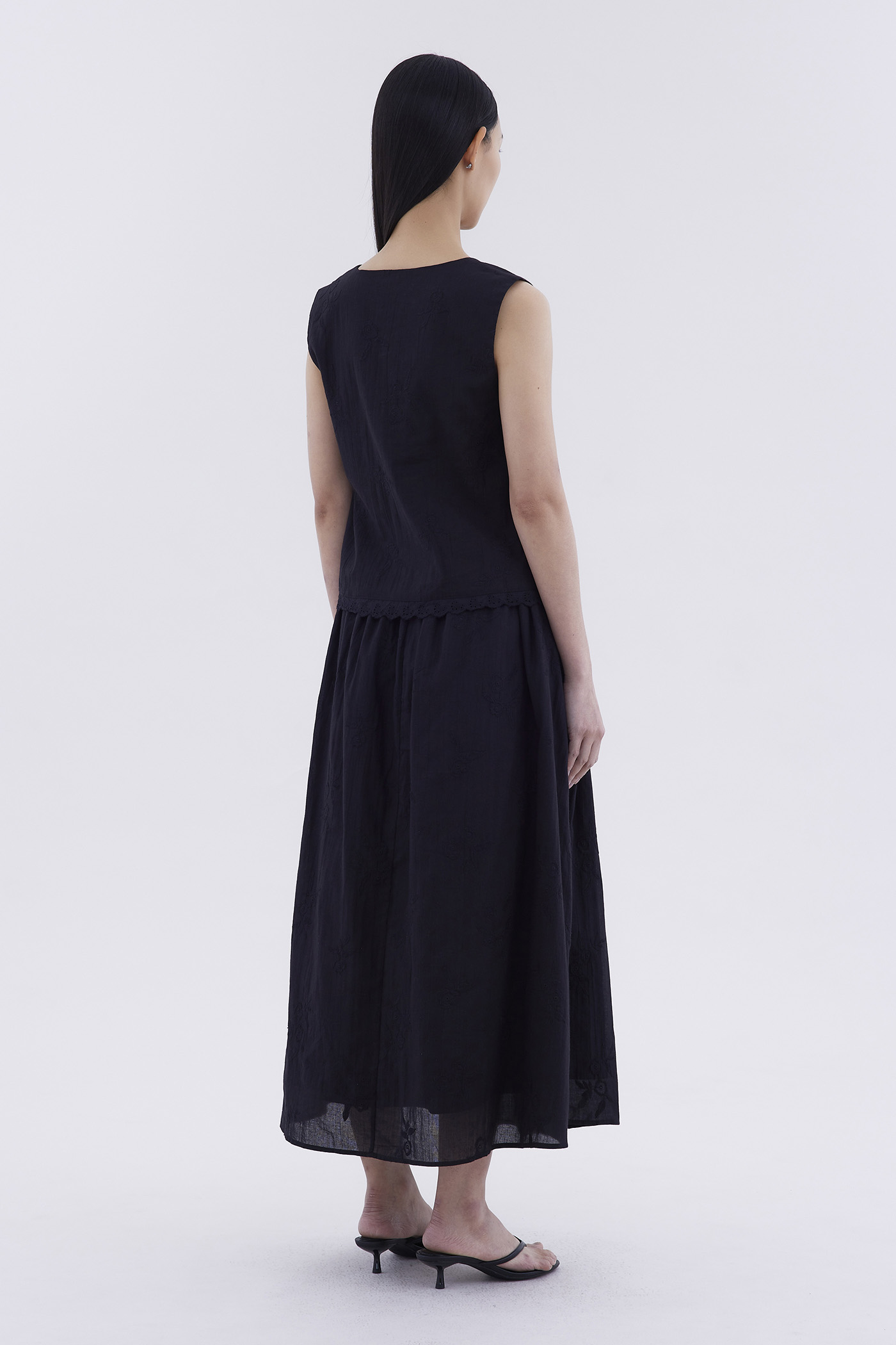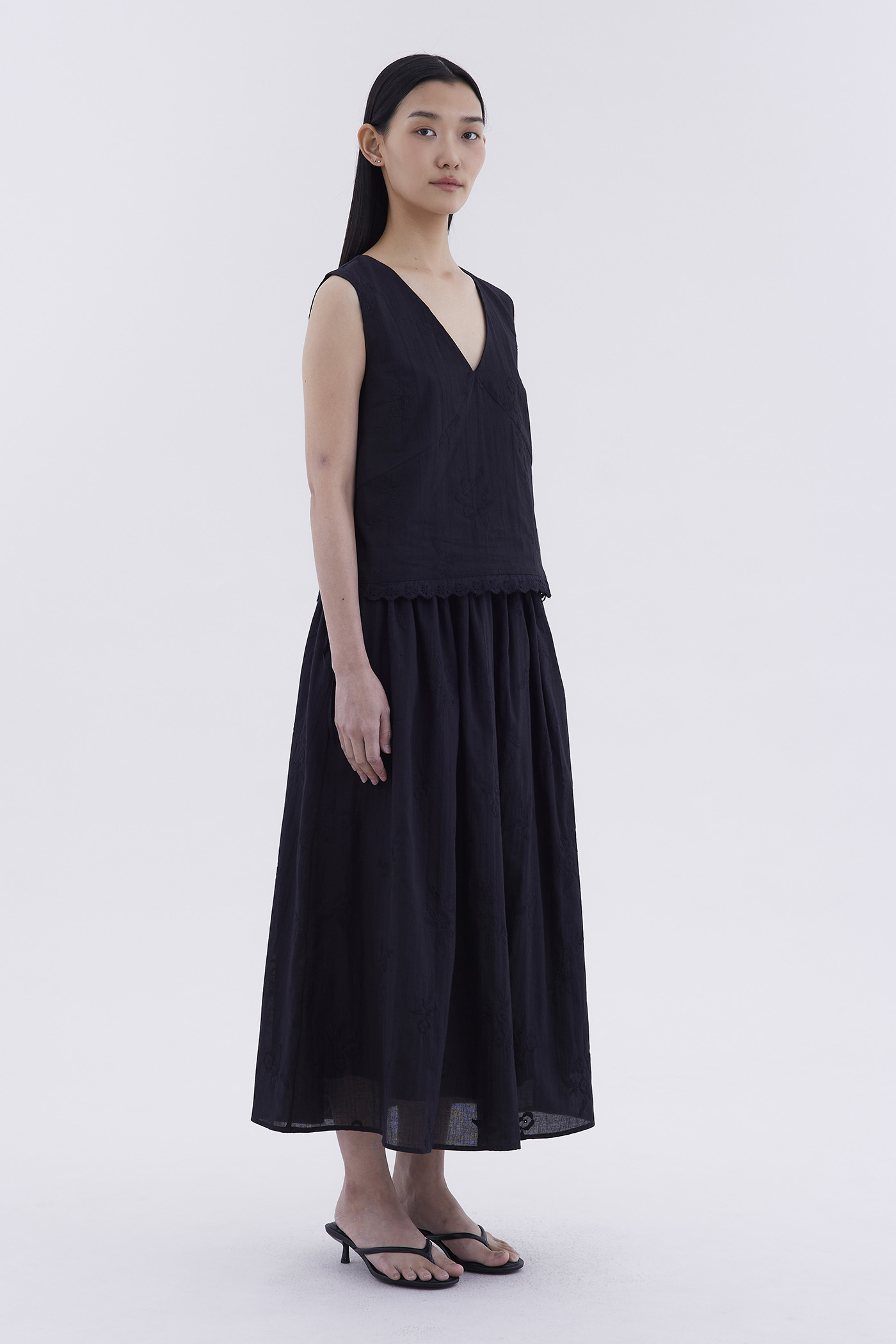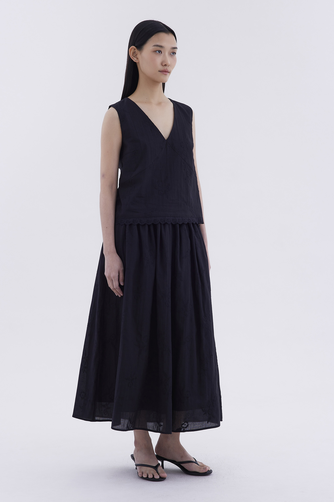 Lasting patterns. Cut from softly structured, floral-textured cotton broderie, this sleeveless top features a V-neckline and lace-trimmed hemline. Worn in a relaxed fit.